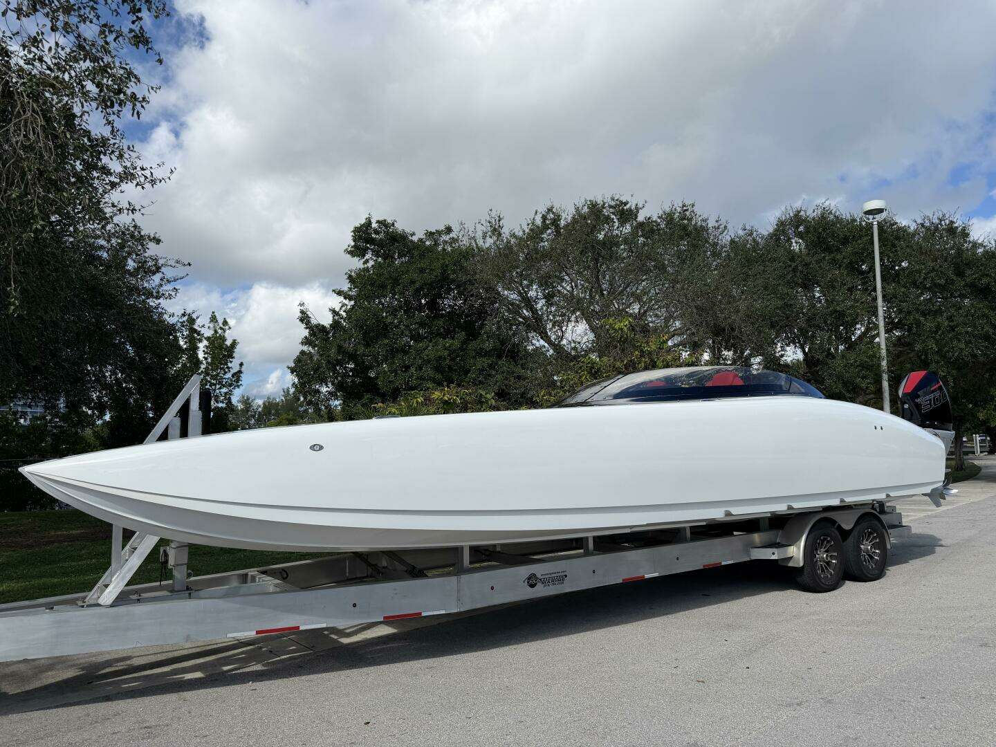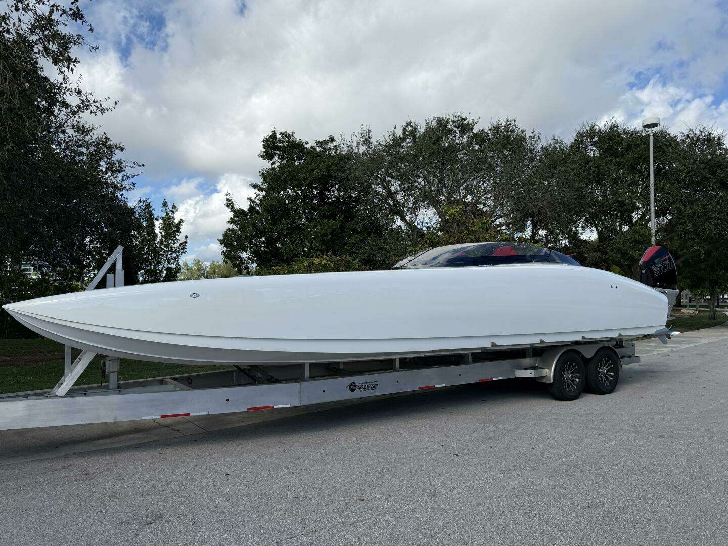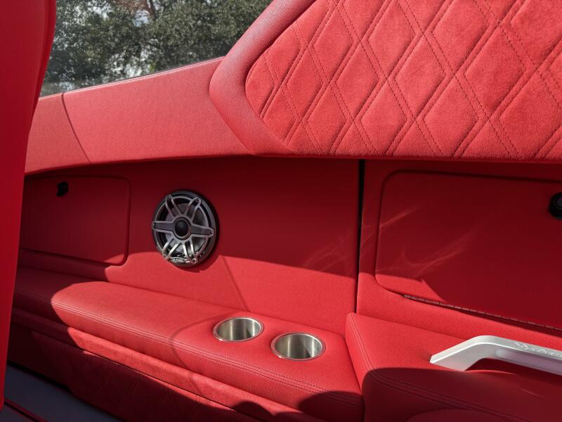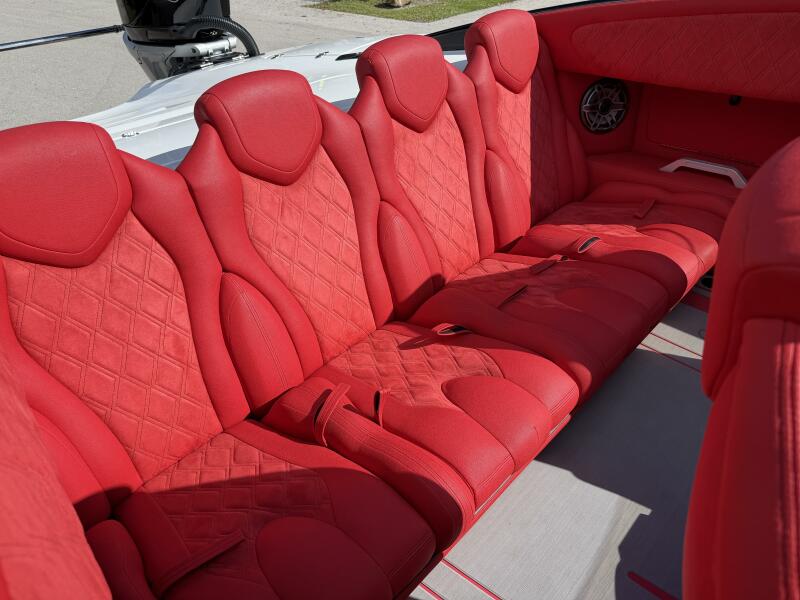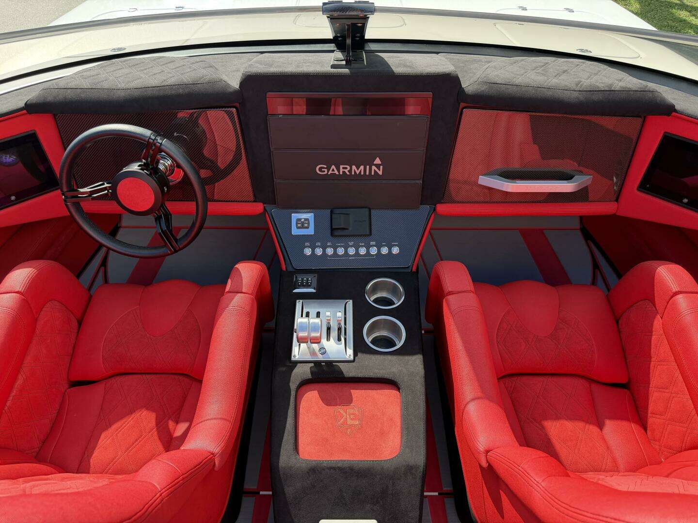 2022 Wright Performance 320, with the new Mercury Racing 300R AMS engines with 70 hours and CNC propellers. The 320 is very easy to drive and handles amazing. This boat has a slick white paint and red interior utilizing Ultra Leather and Alcantara. 17" Garmin GPS, Dual Vessel View 903s, Stereo w/ 4 7.7s and one 10" sub, on board charger.