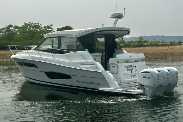 The 2022 Regal 38 XO is an express cruiser that combines elegance with performance. This vessel features a modified vee hull shape, ensuring stability and smooth navigation on the water. Powered by three Yamaha 300hp outboard engines, the Regal 38 XO promises exhilarating speed and responsiveness, perfect for day trips and extended cruising. She boasts very low hours and a like-new interior with recently reupholstered salon seating. The accommodations are thoughtfully designed with two cabins and a dry head/separate shower, providing comfort for your guests. Experience the perfect blend of luxury and performance with the Regal 38 XO where every voyage becomes a memorable adventure.
