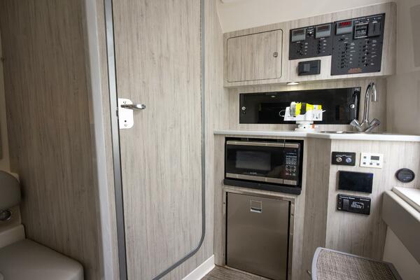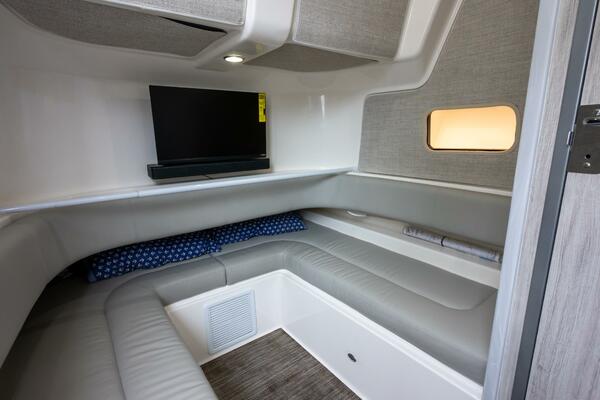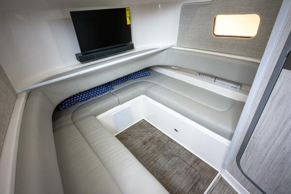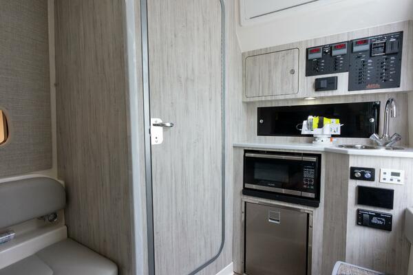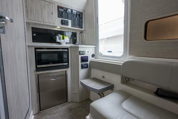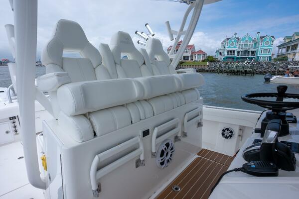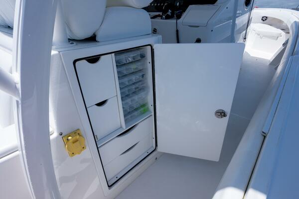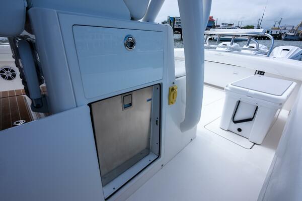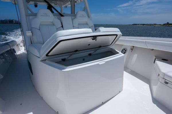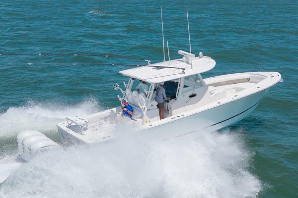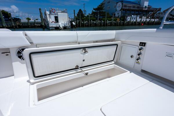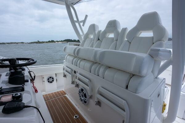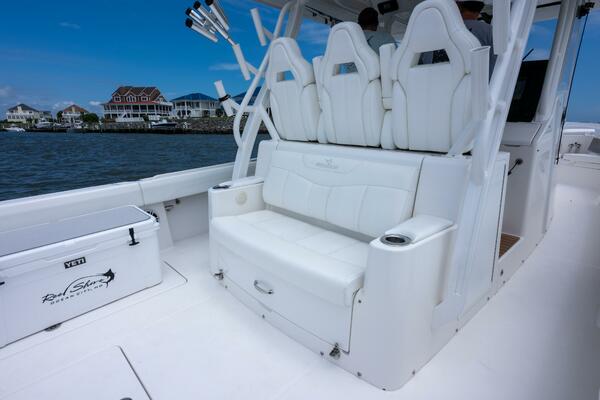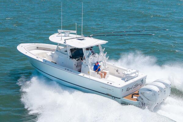 This 2022 37' Regulator is completely immaculate with only 210 hours (100 hr. service performed when vessel was winterized}. Owner spared no expense when ordering and building this gorgeous Abaco Sky vessel. When built she was adorned with all options available at time of build. Seller has added many extras to her as well: A gorgeous custom bait board that slides into 2 stern rod holders. This board has 4 rod rocket launchers across it so trolling lines are out of your way. An extra set of electric reel outlets (on top of factory outlets) were mounted in console to accommodate electric dredge reels Factory. Garmin VHF replaced by an ICOM. A second ICOM was added also. FLIR night vision. Custom engine covers. Seakeeper equipped. She is very well equipped below whether it be needed for an overnight offshore trip or a weekend away with the significant other, this is an extremely rare opportunity to own an INCREDIBLE, OFFSHORE CENTER CONSOLE FISHING MACHINE that is equipped to the max. She is truly turnkey and ready for her new owner.