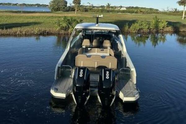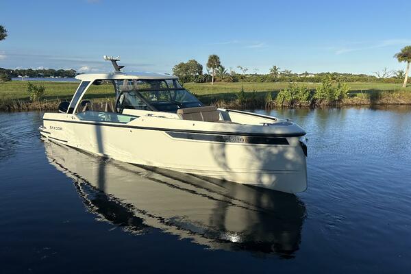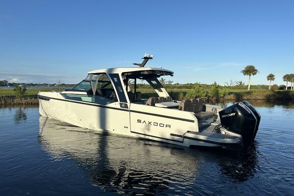 2022 SAXDOR 320 GTO. THE LATEST IN PERFORMANCE AND DESIGN FROM THE ORIGINATOR OF AXOPAR. THE UNIQUE TERRACE DOORS SEPARATE THIS VESSEL FROM MOST ALL OTHERS IN THE INDUSTRY. LARGE CABIN WITH SEPARATE BATHROOM AND IMPROVED HEADROOM OVER HIS PREVIOUS BRAND. WET BAR AND SINK WITH TWIN FRIDGES AND INDUCTION GRILL. THE TWIN 300 VERADO’S PROVIDE FOR SPEED AND EFFICIENCY AND A THRILLING EXPERIENCE. ONLY 256 HOURS AND NO BOTTOM PAINT. LOCATED IN STUART, FLORIDA AND AVAILABLE FOR VIEWING ANY DAY.