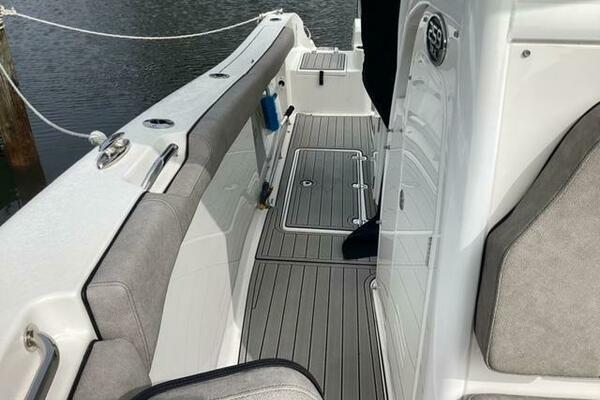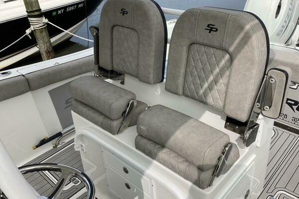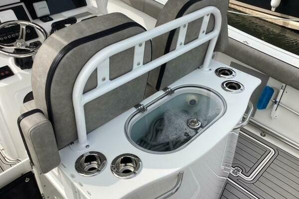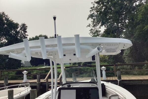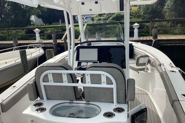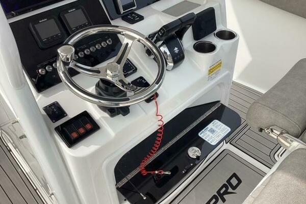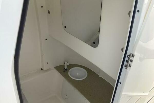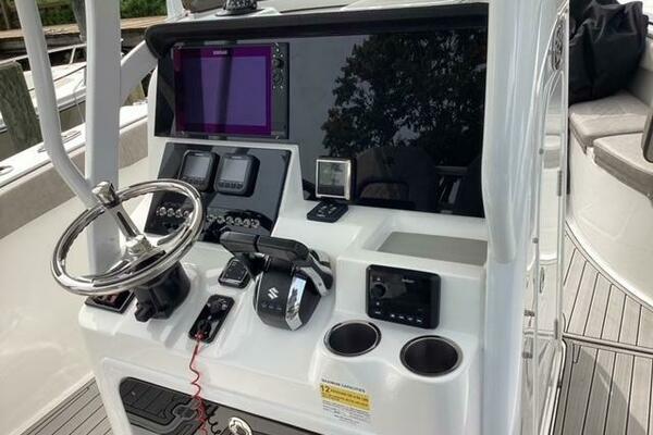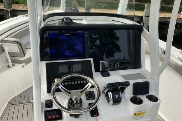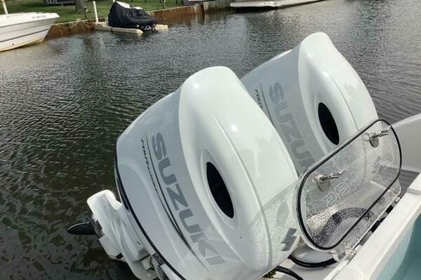 This boat shows so close to new you will think it is. Very nicely equipped with chart plotter, radar and autopilot. She has never been fished she has just been family bot for cruising around. Very low hours on the 200HP Suzuki's with only around 68 hours on these outstanding engines. There is an enclosed head so no need to rush somewhere . These are great riding boats with a 22 degree deadrise on these hulls. There is a hardtop also on this boat. Plenty of seating for everyone. Although equipped for fishing it has never been fished on . He is moving up and is going to miss this boat for sure.