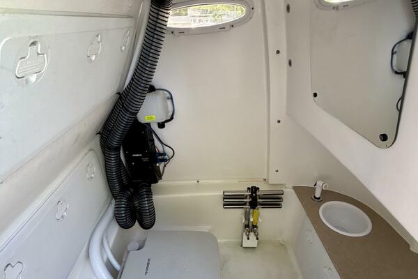 -Enclosed head with pump out toilet
