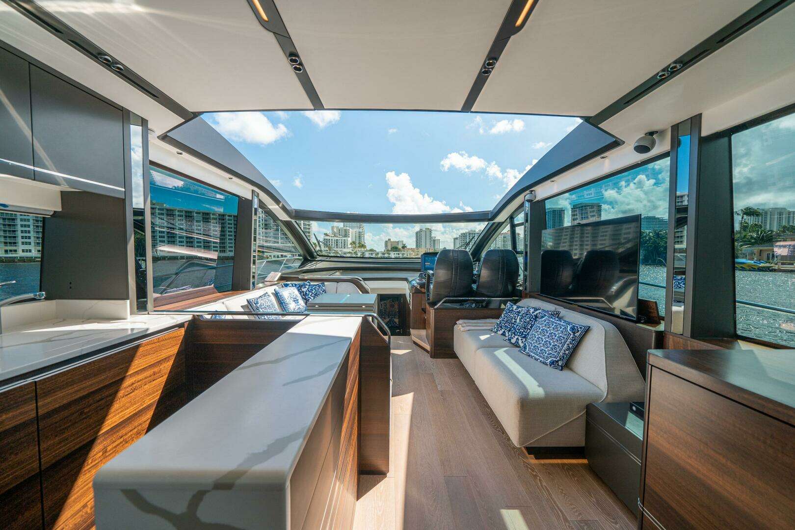 The Predator 65 offers an amazing platform for long cruises to the islands or short day trips. Excellent accommodations along with amazing performance in a low profile yacht to help avoid bridge delays. Tons of natural lighting and on great weather days, open the sunroof and lower the back window for a true day boating experience.