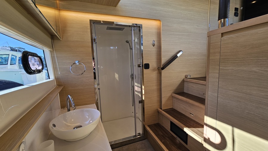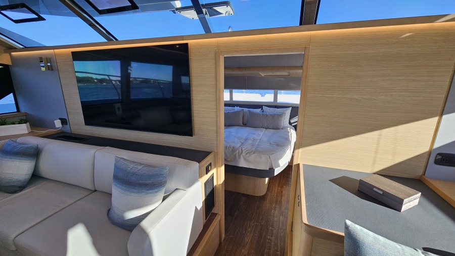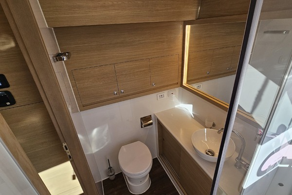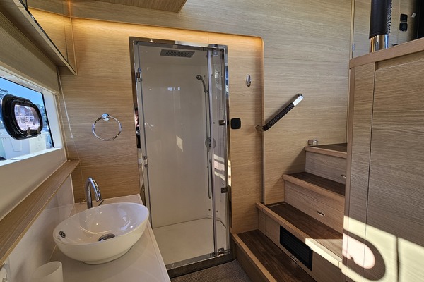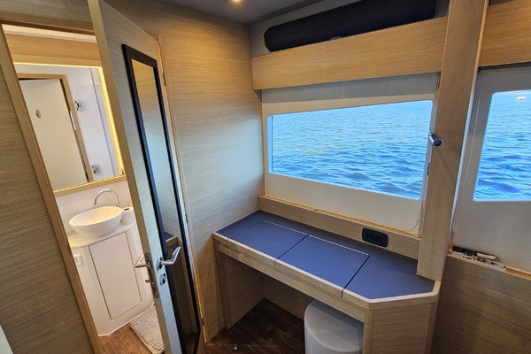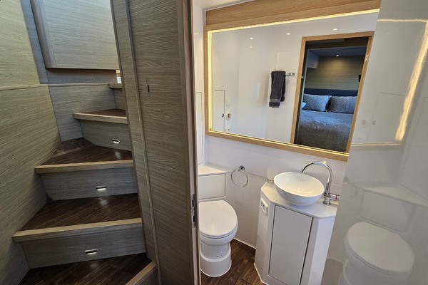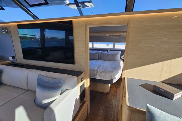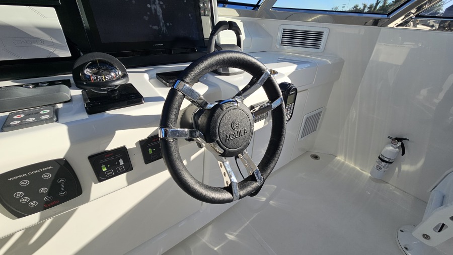With unmatched stability across its impressive 25'2" beam, this remarkable yacht makes every mile feel like a reward. The panoramic salon with full-size refrigeration and oversized sliding doors flows seamlessly to the expansive cockpit. Above, the flybridge becomes your elevated social hub with multiple seating areas and wet bar. The full-beam master suite offers privacy, while thoughtful touches throughout create a genuine sense of home. With smart navigation systems and Category A ocean certification, the Aquila 54 gives you everything needed to roam farther and feel completely at home along the way.