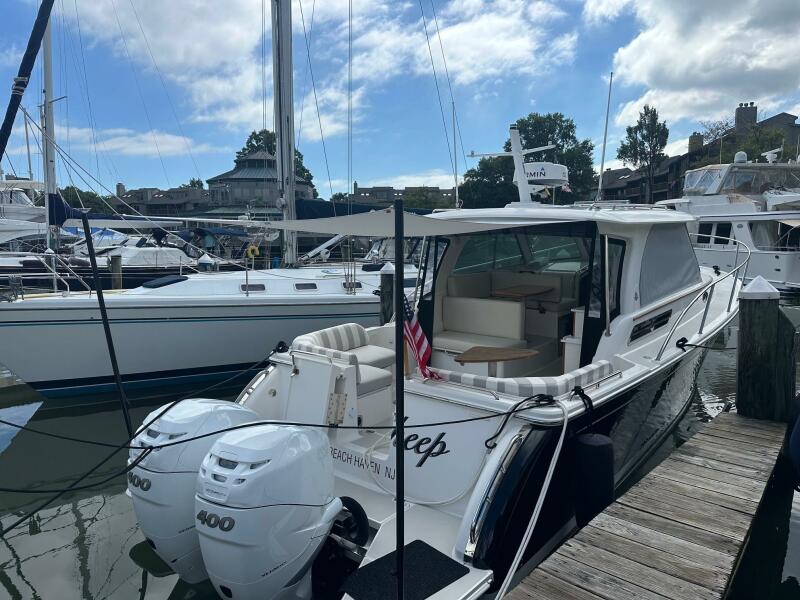 Seakeeper 3 stabilization, Mercury Verado 400 2.6L with joystick docking and station keeping Helm and Cabin air conditioning and heat, upgraded 7.5KW generator (less than 10 hours)