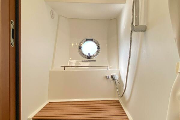 Brightness, user-friendliness and comfortable living characterize the welcoming yet practical spaces of the Swift Trawler 41. There are lots of innovative solutions making life easy aboard. The aft galley links seamlessly with the cockpit, which has a sliding bench making it easy to get to the swim platform. In the wheelhouse, the pilot site rotates, allowing eight passengers to sit down in the saloon. The lounge space converts to a comfortable double berth sleeping space, surrounded by a curtain for privacy. Below deck, the three cabins on board bring to 7 the number of passengers the boat can accommodate comfortably on this innovative family cruiser.
