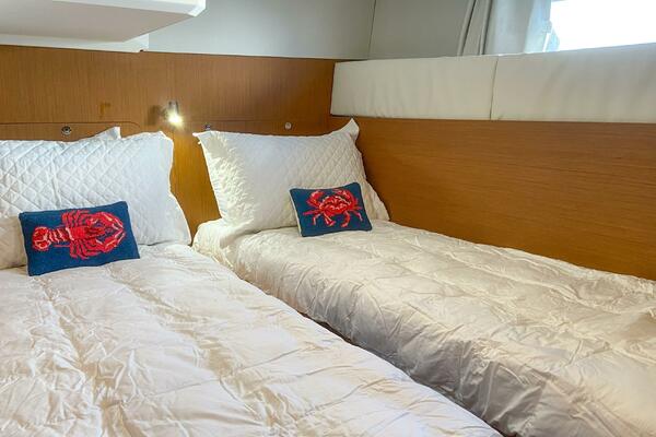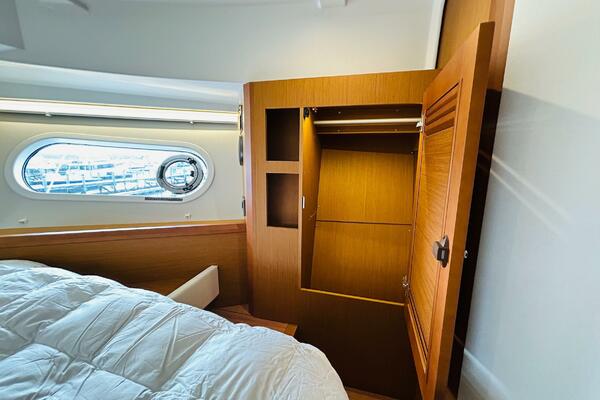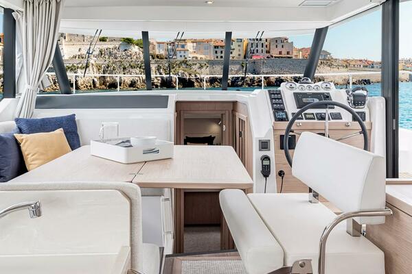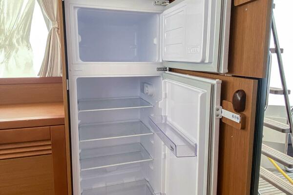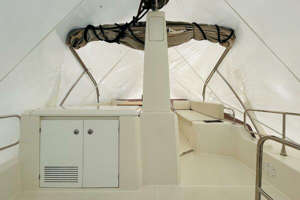 Bask in the scenic views of your surroundings from your flybridge! Up there, you can cook delicious meals on your grill and keep cold drinks in the mini fridge. If the sun gets too strong, simply raise the bimini for some shade.