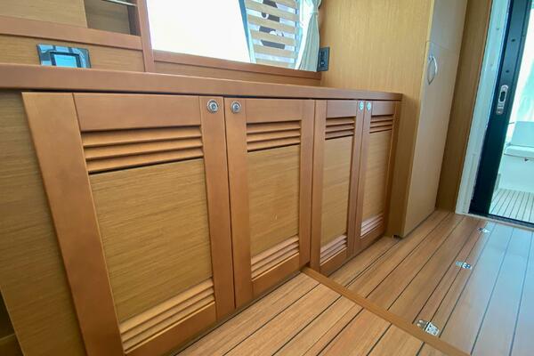 The ST 41 is the perfect size for either long-range cruising or short excursions. Extended stays onboard are a breeze with the conveniences of a washer/dryer combo, a dishwasher, and ample storage space. A notable upgrade is the Hurley H2O Dinghy Davit System, which provides easy storage and launching of your dinghy.