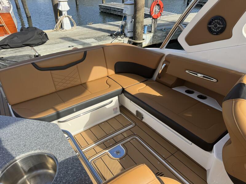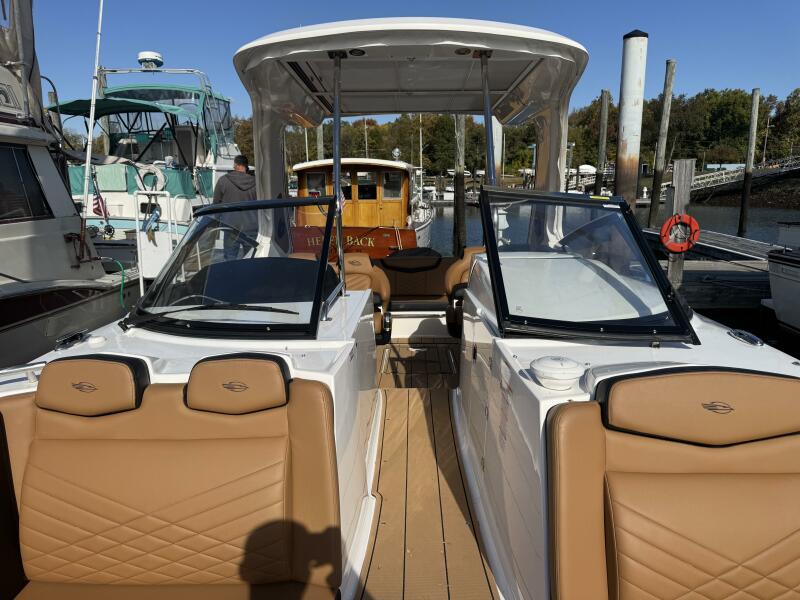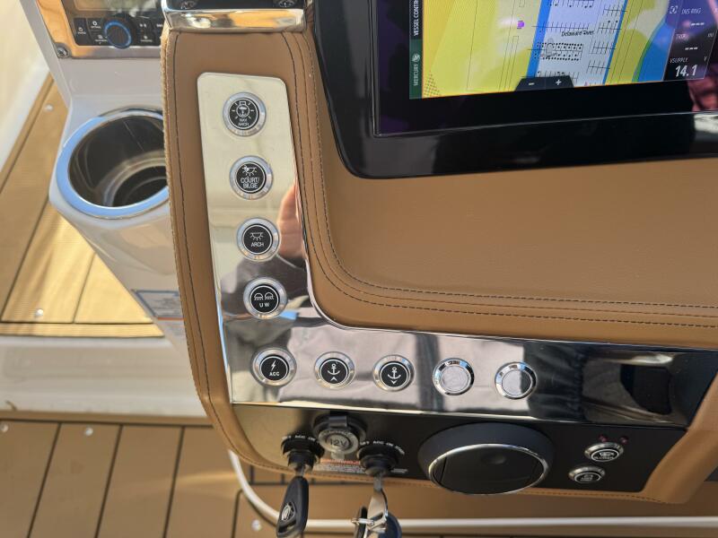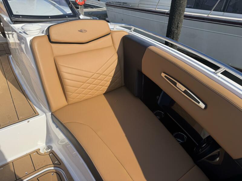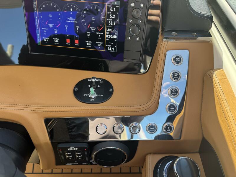 The amazing 347 SSX offers the most demanding of boaters the best of both worlds with a supersized bowrider layout and a full-beam enclosed cabin. We've never built a boat more versatile or impressive than the 347 SSX. Massive seating capacity. Luxury appointments. Clever features. Go anywhere performance. But the real magic of Chaparral innovation happens when you open the port side entry door and discover a space defying lavish full beam cabin. While most rivals at this length settle for a split beam design where neither area satisfies, the 347's unified cabin comes complete with an entertainment console, enclosed head and overnight accommodations for two. The 347 SSX comes standard with twin 9" touch screen displays with Chartplotter, GPS, WiFi, Insight Charts, Transducer and Engine Data functions. A full digital instrumentation completes the helm with fog resistant glass lenses, brushed aluminum faces and stainless steel bezels. Our luxurious, leather wrapped steering wheel is sure to make every voyage an enjoyable one.
