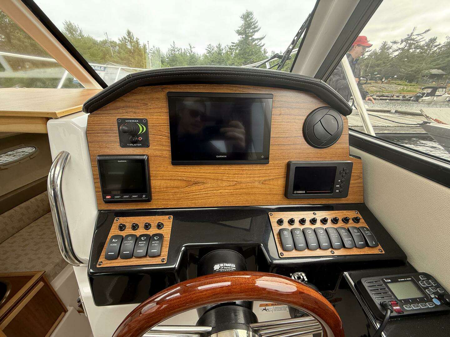 Key Features Include: Entertainment Package (19" TV/DVD player - 12v) | Bow Thruster | Garmin Autopilot with remote | Garmin Touchscreen Chartplotter | Garmin VHF | Yamaha Digital Engine Display | Air Conditioning / Rev Cycle Heat | Inverter Package (3kW) | Lithium-Ion battery upgrade: enables inverter-powered Air Conditioning/ Rev. Cycle Heat | Phifertex Window Covers | Underwater Lights | Safety Kit, Fenders, Lines, Flares, Fire Ext, Life Jackets, Boat Hook