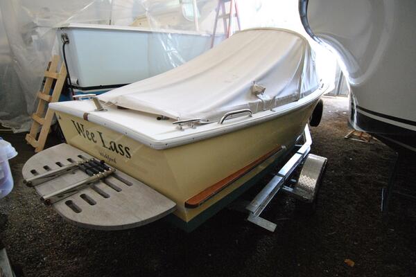 WEE LASS is a virtually new example of the iconic Dyer “Glamour Girl” launch built by The Anchorage Inc. (Dyer Boats) in Warren, Rhode Island. First introduced in the 1950’s, the Glamour Girl was designed as a stylish and versatile utility launch. Its elegant lines and practical design have made the model suitable for use as a tender to larger yachts or for leisurely harbor cruising. Notable design features of this example are the unique advantage of both tiller and wheel steering, a reliable 29hp Yanmar diesel, and custom built aluminum trailer. Those inspecting her will find her in excellent mechanical, structural and cosmetic condition ready to go.