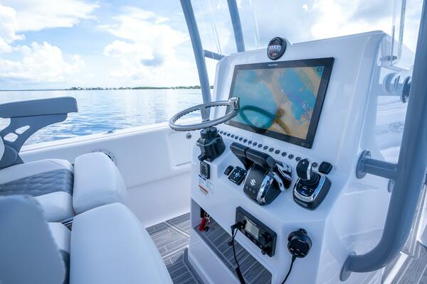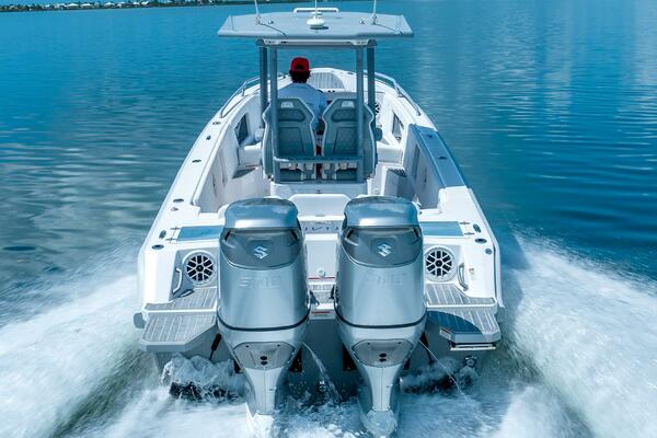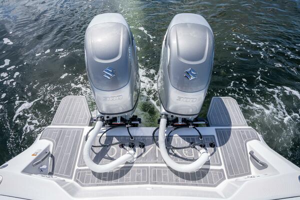 This boat is powered by Twin Suzuki 300 motors mounted on Jack plates, the boat is propelled to speeds approaching 60+MPH with fuel efficiency of over 1.4 miles per gallon at 30MPH. Maneuvering this boat is a breeze with the Optimus Joystick system and the ride is second to non thanks to our design. Installed with the SEAKEEPER RIDE automated trim system to amplify the ride quality and comfort.