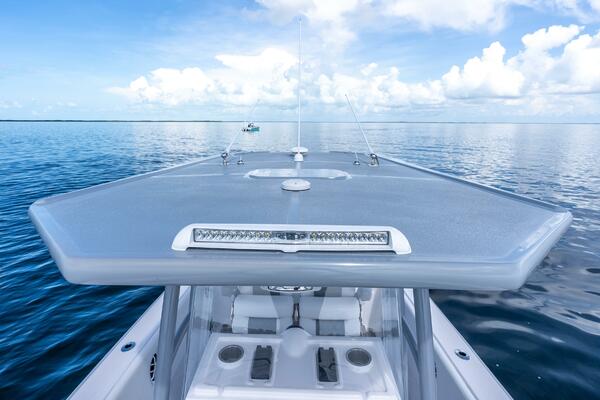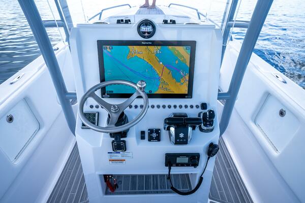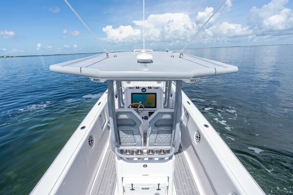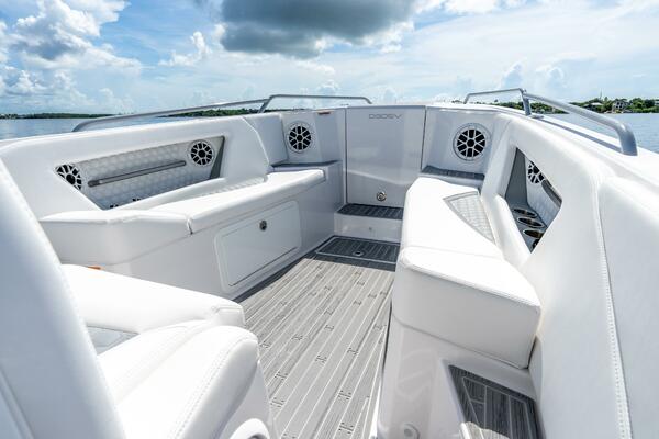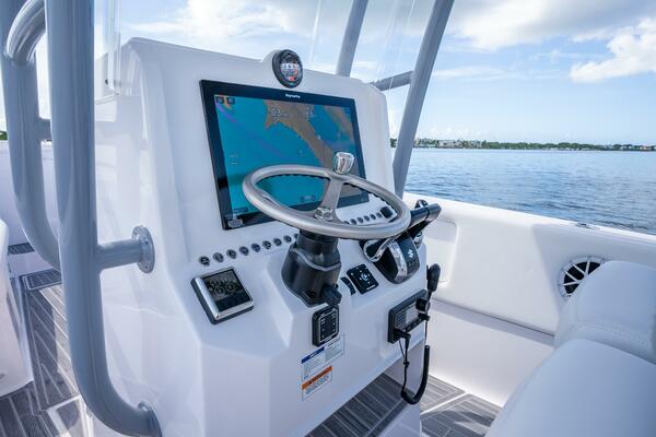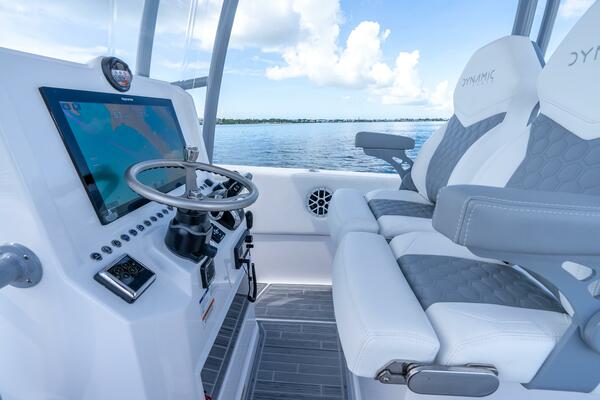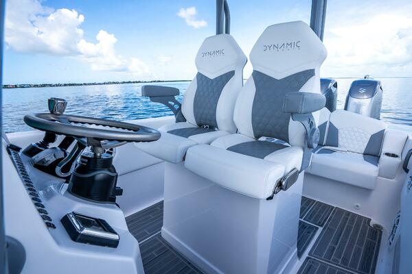Dynamic offers a variety of seating options on the 305V. In the bow, a dual bench Fiberglass seats with a fully flush cabin hatch that turns into a sun-pad or a platform, it makes the ultimate utility for any day on the water. Equipped with full beam seating in the aft, leaning post Yeti 45 cooler, and SEAKEEPER RIDE system. You can fit the whole family and friends, or use the versatile layout and features day or night to fish, cruise around, island hop, commute and so much more!