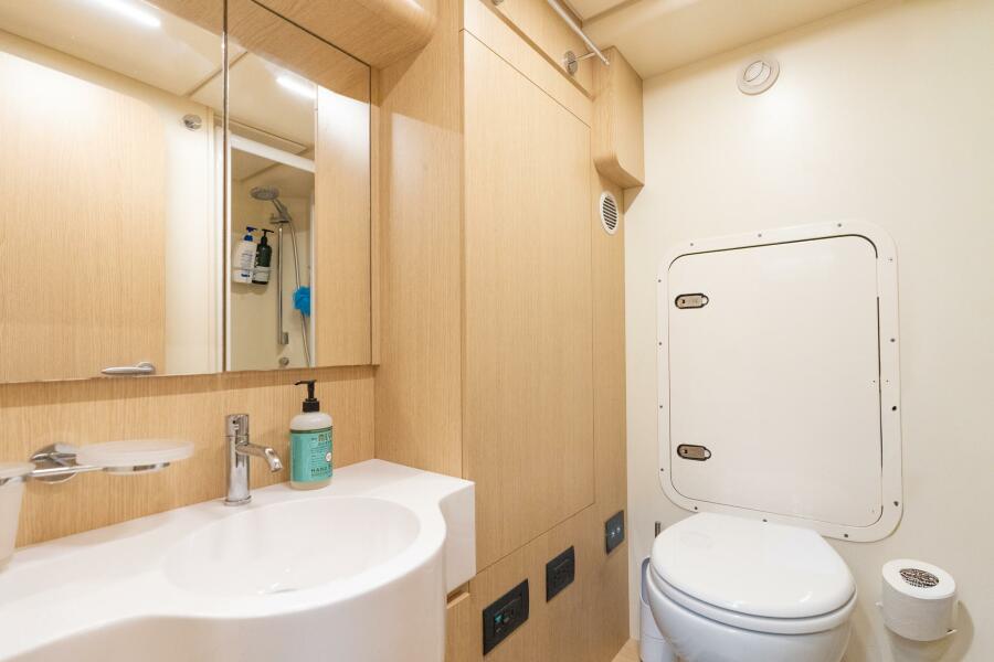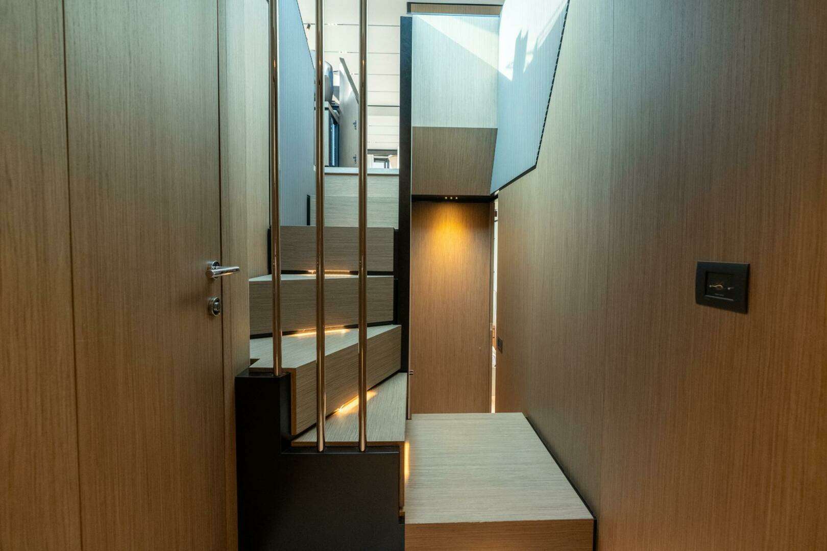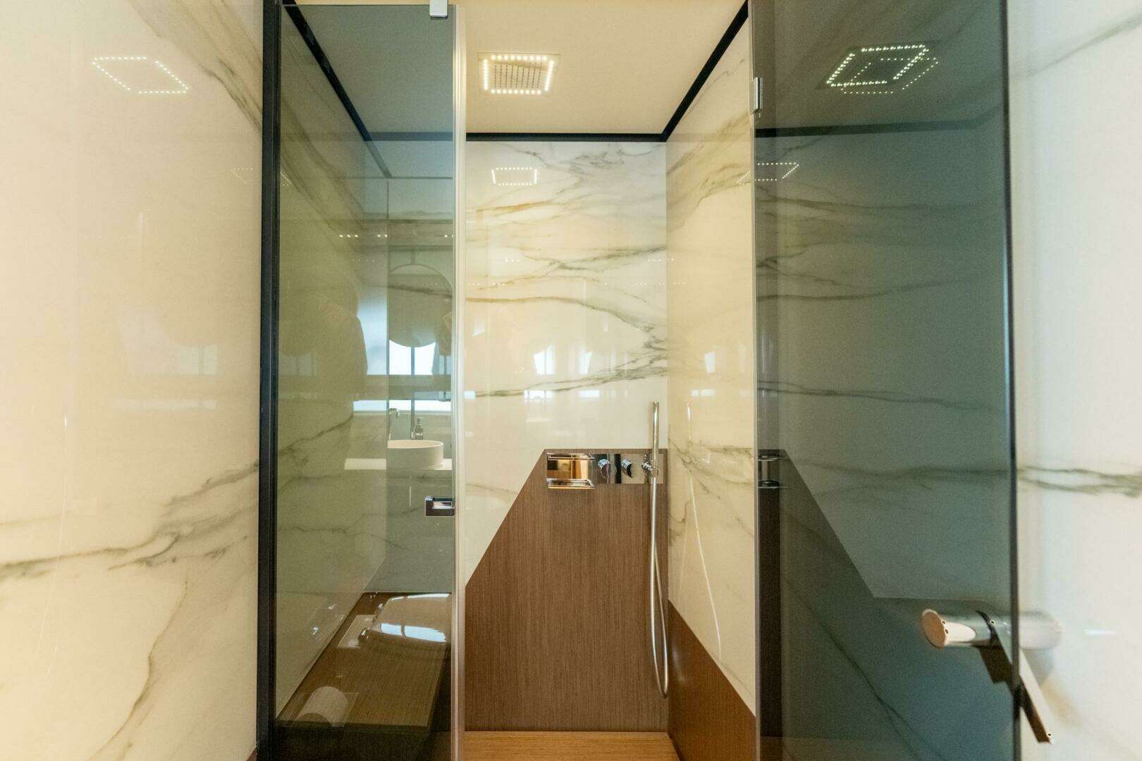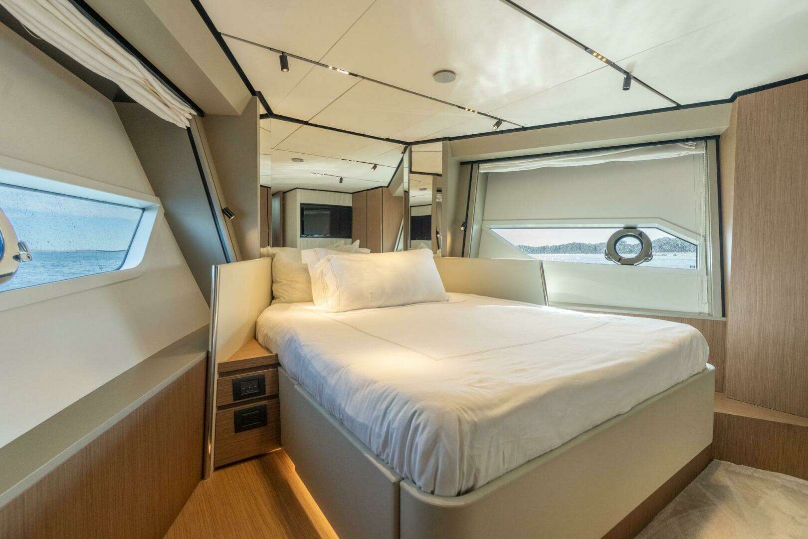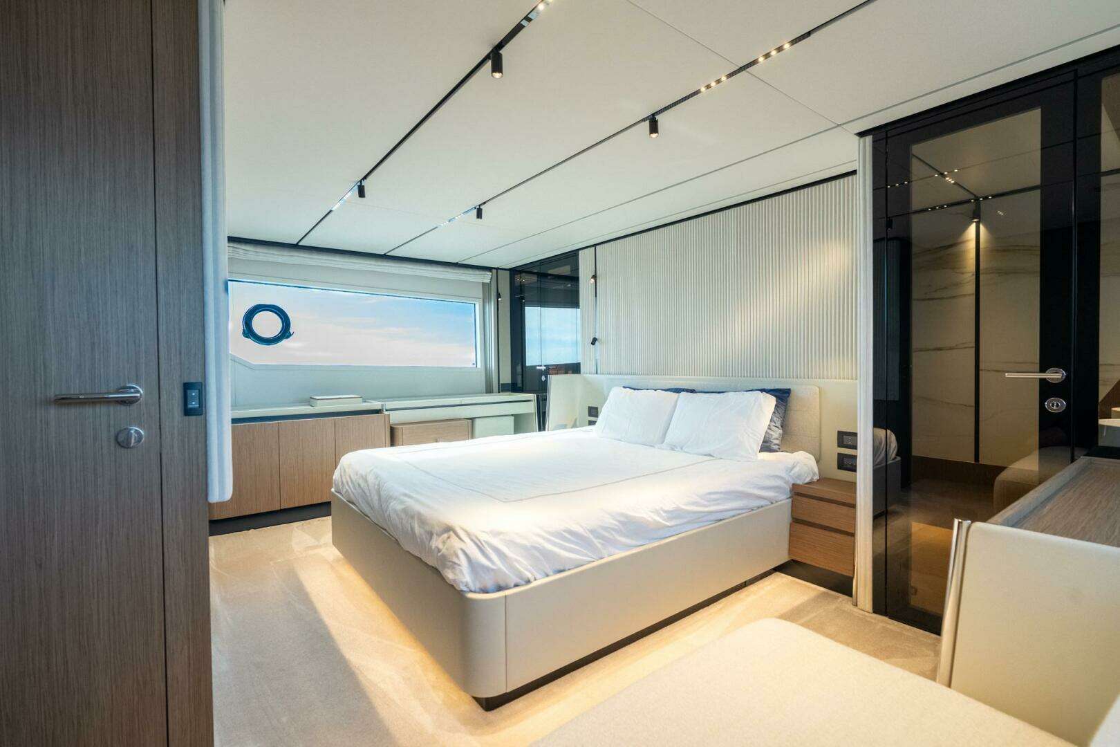- Full-beam Master Suite amidships – A sanctuary with private en-suite, walk-in wardrobe, hull-side windows for panoramic views, and a warm, contemporary ambiance.