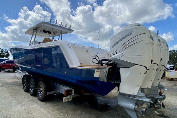 Equipped with triple Mercury Verado 400s (1200 HP!), the Raptor 390 offers the kind of speed and torque that lets you run offshore with confidence, while joystick piloting makes maneuvering and docking approachable for any captain. With a 1,000-gallon fuel capacity, range is not an issue. Long runs, bluewater trips, island hopping, and tournament weekends are all on the menu.