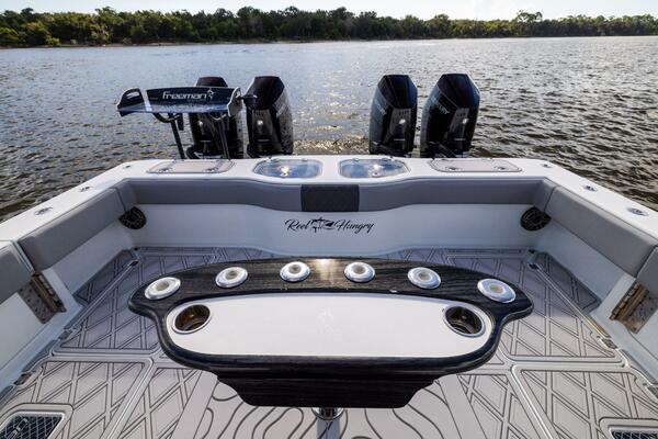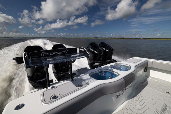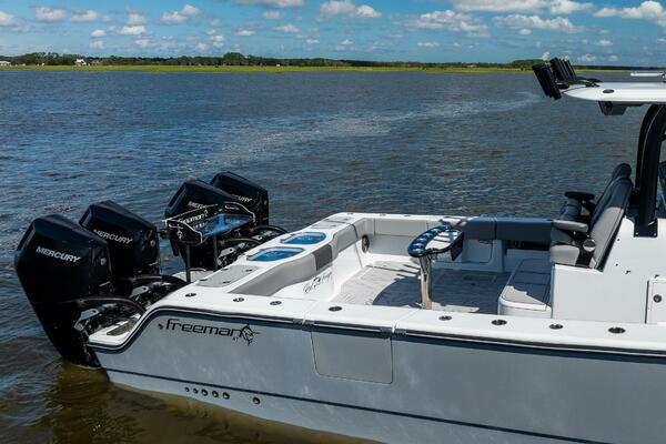 This 2023 Freeman 47 delivers the perfect blend of elite offshore performance and luxurious comfort. Repowered in 2025 with the Preferred Mercury 400 V10s, it offers enhanced power, reliability, and efficiency. Meticulously maintained and Lift Kept. This vessel is in exceptional condition. Don’t miss your chance to own one of the most capable and well-cared-for Freeman 47s on the market. 2023 Freeman 47 New Quad 400HP V10 Mercurys (110 hours) Full Factory Warranty Remaining Mercury Joystick With Skyhook Ameratrail Gooseneck Trailer Available Electronics: (2) Simrad NS03s 24” GPS Simrad Autopilot Simrad Broadband Chirp Sounder Module 1k & 3k Transducers 3D Sidescan Simrad NSS3s 9” Rear Facing Screen Mercury Vessel view XM Weather (Subscription Required) (2) iCom VHF Radios FLIR Night Vision LED Light Bar 50” Curved Multi Color Under Gunnel LED Lights (6) Electric Reel Plugs Over The Top JL Audio Package (2) 12” JL Subs in Bow (2) 8” JL Speakers in Bow (2) 8” JL Speakers Mid-ship (2) 10” JL Subs Mid-ship (2) 10” JL Subs Aft (2) 8” Speakers Aft (6) 7” JL Speakers in Top Multi Color Underwater LED Lights Starlink Other Options: Haze Grey Hull Color Two Tone Grey Upholstery Color Dual Row Seating Port & Starboard Dive Doors DEKit Kit Teak Rocket Launcher Gemlux Bases Marsh Tacky 23’ Outriggers Rear Facing Mezzanine Seating Leaning Post Tackle Station Kenyon Electric Grill Plumbed Electric Marine Head Full Polycarbonate Enclosure Removable Cutting Table Edson Carbon Fiber Steering Wheel Zipwake Pressure Mate Onboard Pressure Washer Pump (2) Removable Custom Tuna Tubes Located in Saint Augustine, Florida