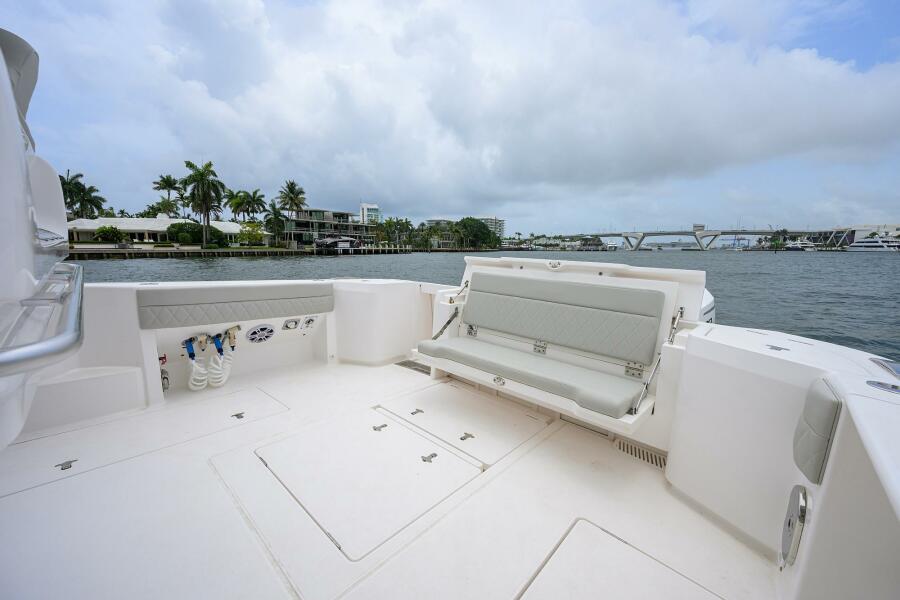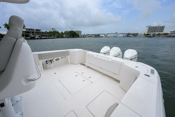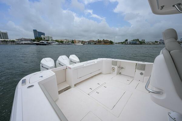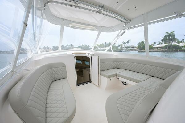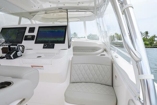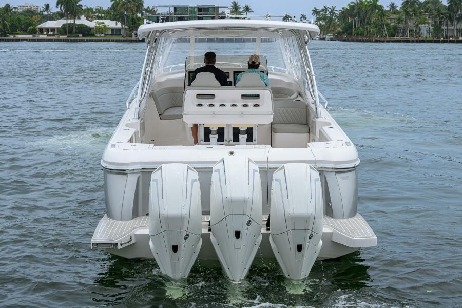 With its new hull, wider beam, and larger cockpit, the new 41 Valor has additional enhancements to this model that include a redesigned console helm with more room for larger electronics, a modified transom platform with new pass-through walkway and staircase, a modified companionway door, and increased fuel capacity.