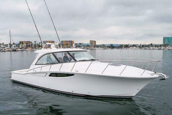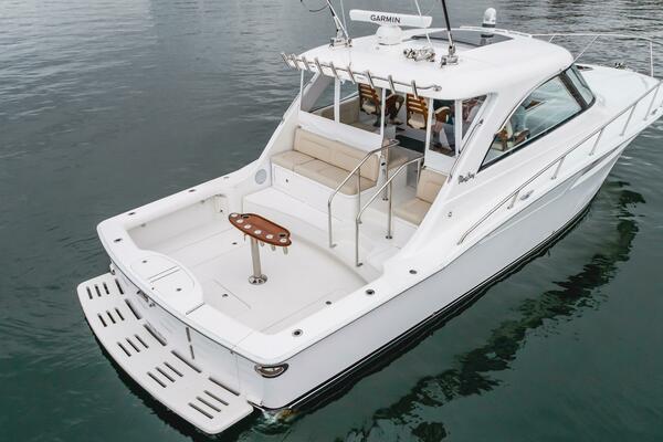 Discover the pristine COMMODORE TWO, a turnkey Mag Bay 42 Hardtop Express, meticulously maintained and ready for adventure. As the only 42 equipped with a Furuno Omni Sonar, she boasts upgraded electronics, FLIR, and a Sea Keeper for unmatched stability. With just 115 hours, LLC ownership, and all services up to date, this yacht is in like-new condition.