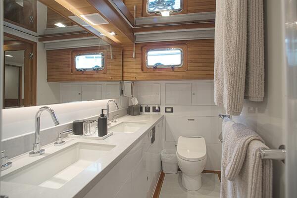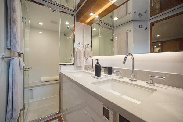 - Full Beam Master Stateroom with oversize windows and Head with 2 sinks and Steam Shower head with Bidet function