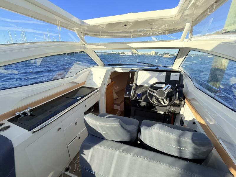 Designed with Nimbus’s signature Sidewalk layout, the W9 provides secure, open walking spaces around the deck, enhancing both safety and comfort underway. The spacious cockpit includes a large L-shaped sofa that transforms into a sunbed, while the foredeck offers another lounging area for relaxation. Features such as a fully equipped galley with a 65-liter refrigerator and cooktop, a separate head with wash basin, and thoughtful design details make it ideal for extended day trips or spontaneous weekend getaways.