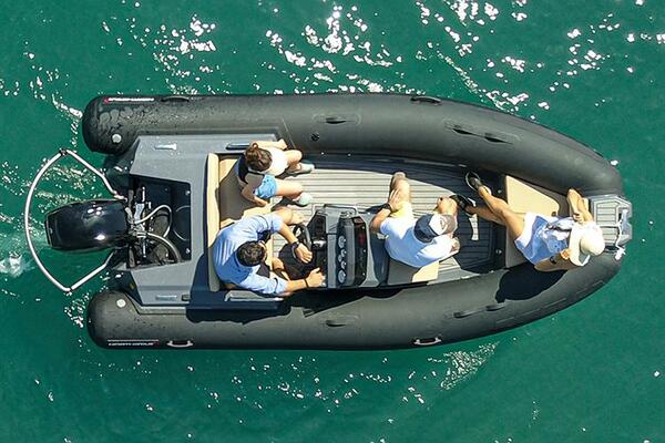 Standard features include an ergonomic console, an acrylic glove box with a USB port and main cutoff switch, a fuel system with an integrated fuel tank, water separator, and fuel gauge, an electrical switch panel, an automatic bilge pump, LED navigation lights, an all-around socket-type white light, a self-bailing deck, large storage areas, sturdy Hypalon tubes, telescoping cleats, and lifting points.
