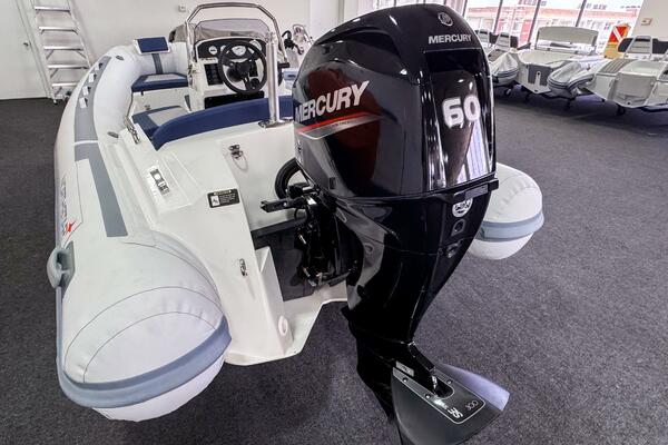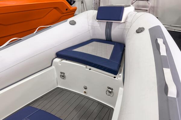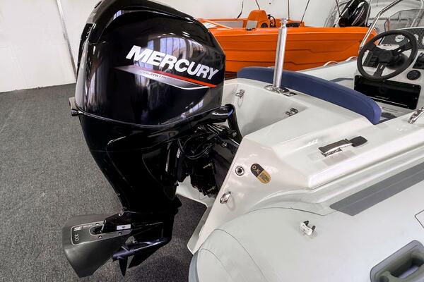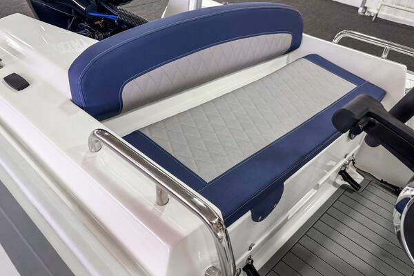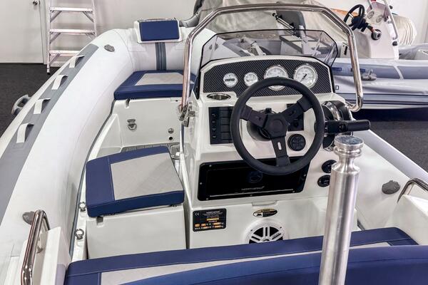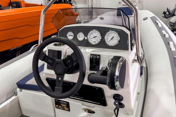 Standard features include an ergonomic console, an acrylic glove box with a USB port and main cutoff switch, a fuel system with an integrated fuel tank, water separator, and fuel gauge, an electrical switch panel, an automatic bilge pump, LED navigation lights, an all-around socket-type white light, a self-bailing deck, large storage areas, sturdy Hypalon tubes, telescoping cleats, and lifting points.
