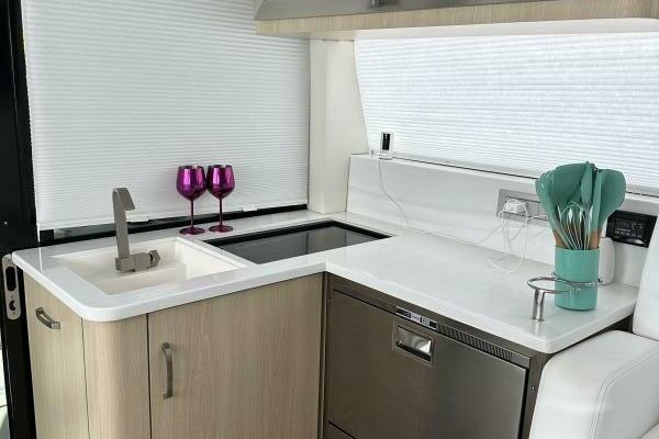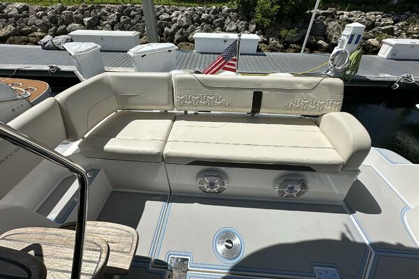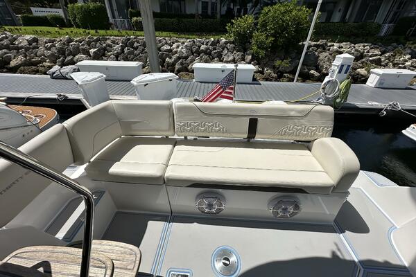 THERE ARE A TOTAL OF 4 TELEVISIONS THROUGHOUT AND A FUSION STEREO SYSTEM WITH A TOTAL 10 EXTERNAL SPEAKERS. THE 38 FXO IS POWERED BY 3 YAMAHA 300 4 STROKE 4.2 LITER OUTBOARDS CURRENTLY WITH 265 ORIGINAL HOURS WITH A JOYSTICK CONTROL FOR DOCKING, ALONG WITH YAMAHA'S DIGITAL POSITIONING SYSTEM.