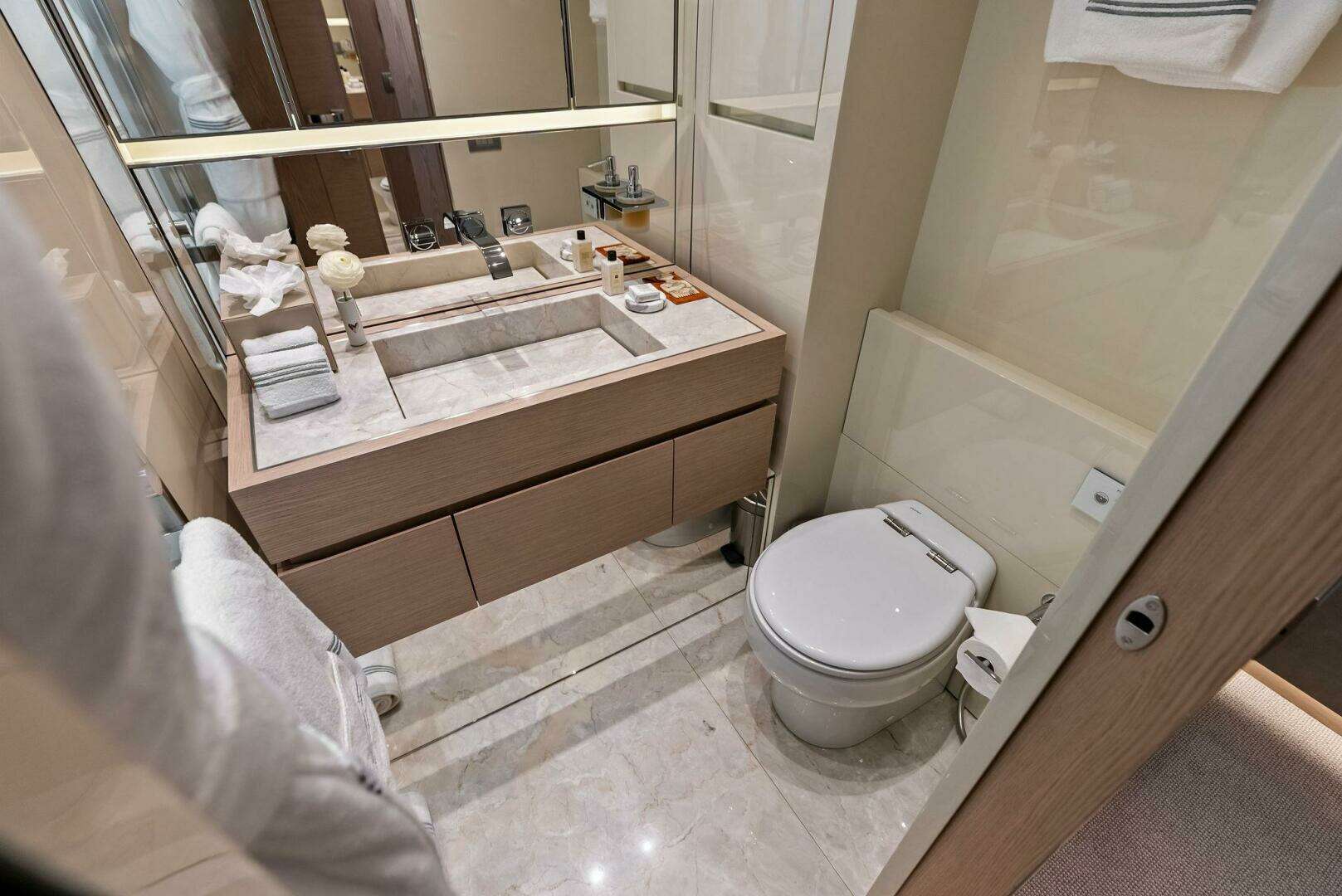This magnificent vessel comfortably sleeps 10 guests in 5 luxurious king staterooms including her full beam on-deck owner's suite, lower guest cabin, 2 x king VIP cabins below and a 2nd owner's (or VIP) on skylounge deck while still allowing for separate skylounge entertaining with formal wet bar and TV. There is an option to utilize a 6th twin bunk cabin off the lower deck guest foyer (currently used as the Captain's cabin, with additional access to crew accommodation through a watertight door forward in the cabin). This would allow up to 12 guests in 6 staterooms. The current owner utilizes 4 crew cabins sleeping 8 crew.