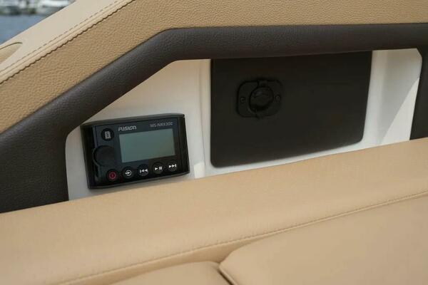 - Interior Storage Compartment (Under Helm): Access From Flip Up Bow Aft Cushion/ Bolster; Light; Access Door To Backside of Dash Instruments; Carpeted Floor
