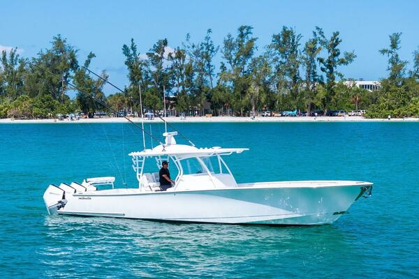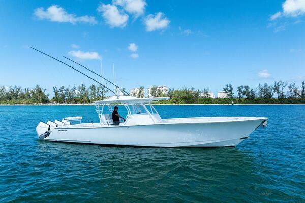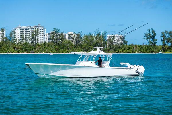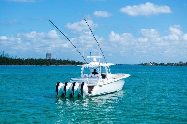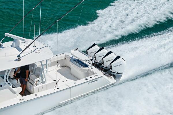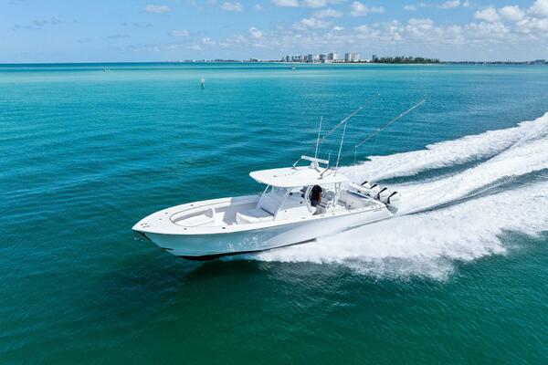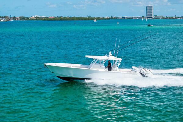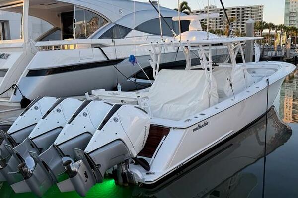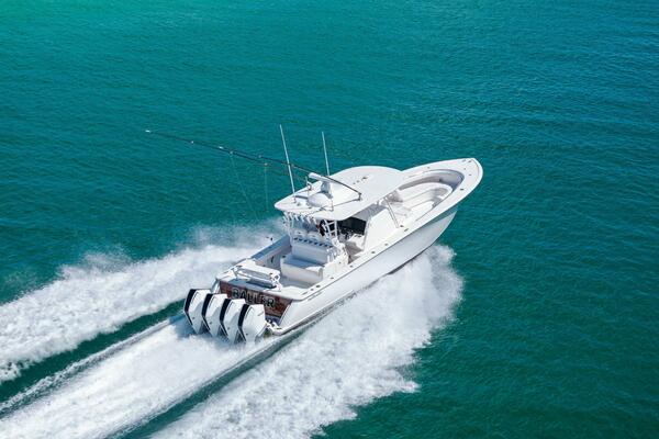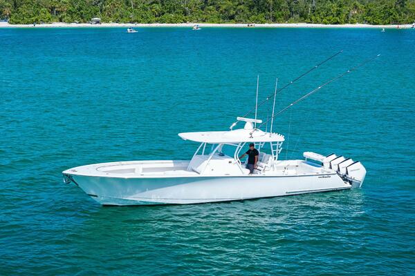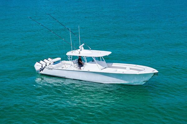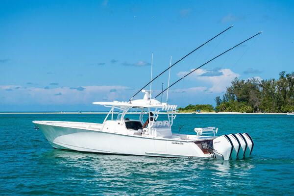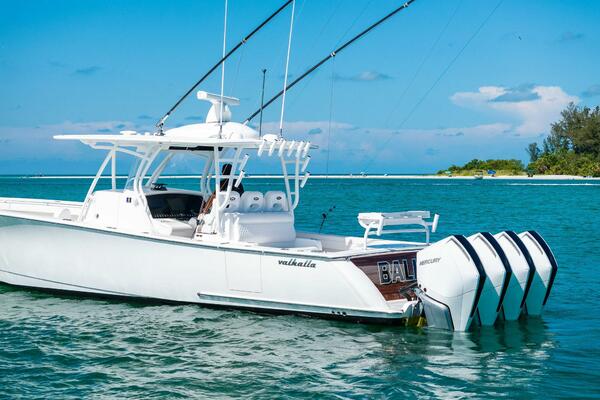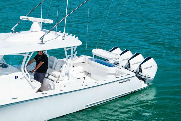 2023 41 Valhalla Center Console is in pristine condition and ready for her next owner! She was ordered custom by an experienced Viking owner with a great mix of fishing options as well as popular comfort and convenience features. She features a Seakeeper with warranty as well as a custom, oversized Palm Beach Towers T-Top. Her quad V8 300 Mercury Verado delivers impressive top-end speeds of 55 knots with the highest fuel economy and range available in any power package. These engines are non-supercharged, have V8 torque, and are very reliable with Mercury extended warranty until Feb of 2028. Her patented stepped / tunnel hull was designed by Michael Peters in collaboration with Valhalla Boatworks designers. The Valhalla 41 is where form and function blend seamlessly into the most advanced center consoles ever made. If you're ready to experience the legendary ride and speed of a Valhalla V-41, call us today!