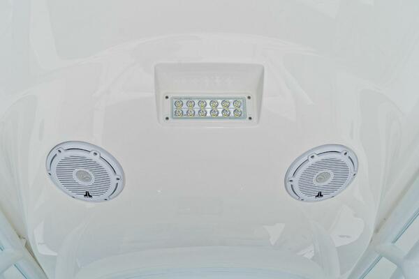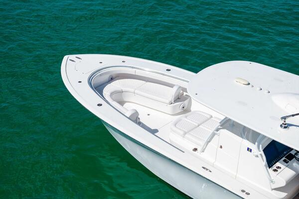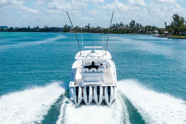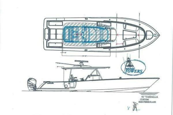 - Custom oversized Palm Beach Towers T-top/hard top with aft supports for extended coverage, rod holders welded to aft legs, Outrigger bases with carbon fiber poles, molded navigation lights, Powder coated white pipework, and Costa Clear windshield panel from HT to console