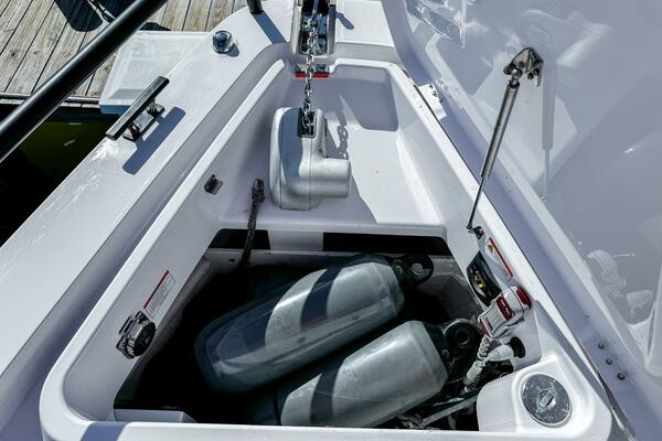 Featuring a brilliant Miami Blue hull with White Mercury 350 V10 Verrados, equipped with 1300 AH Lithium ion battery. Enjoy convenience and comfort with features like the bow thruster, autopilot, enclosed head with freshwater shower. This model also comes with a live well and ski arch for all kinds of fun on the water.