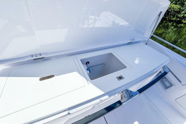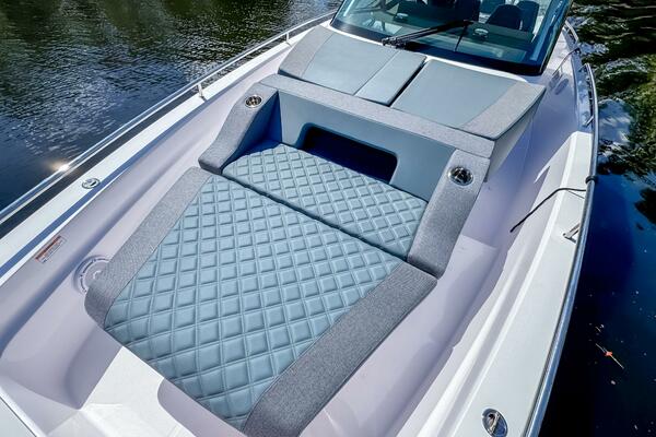 - Fixed sunbed on front deck with storage, Silvertex (Included with Med Package)