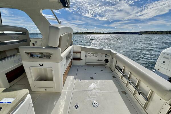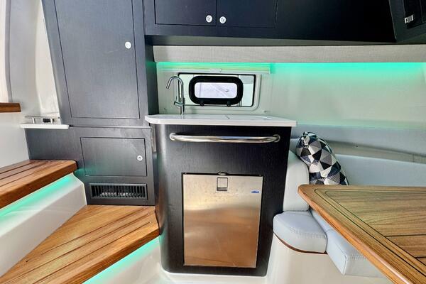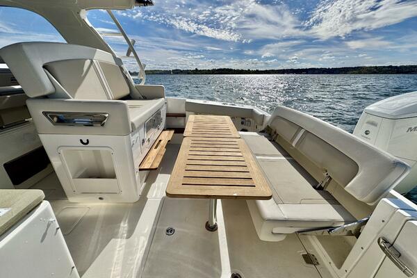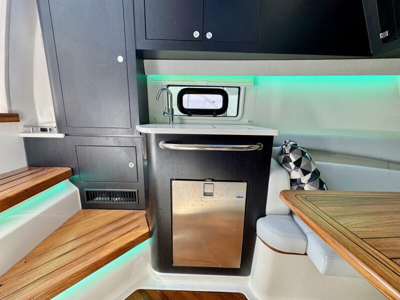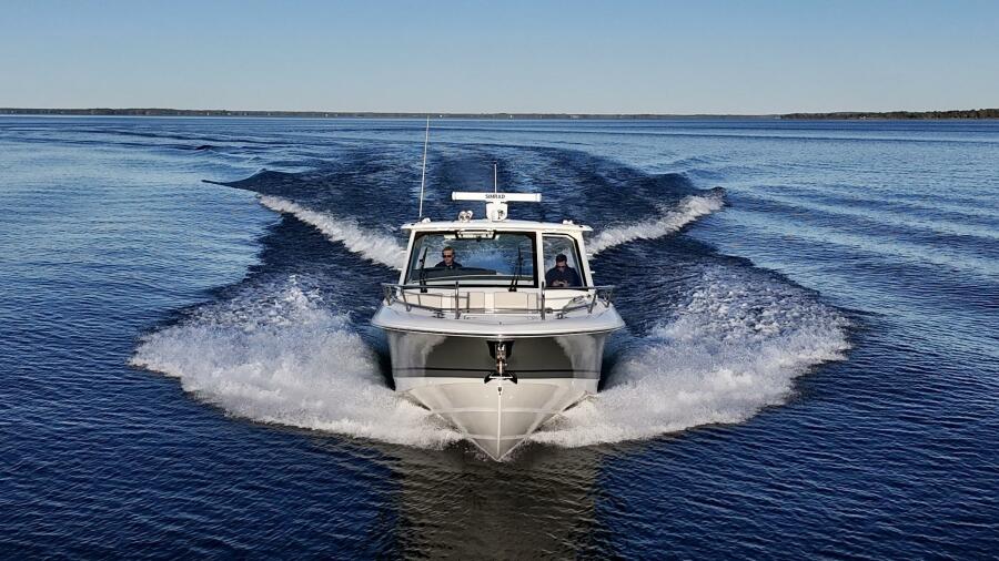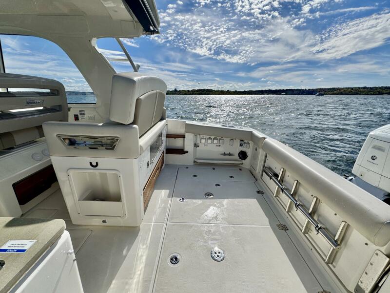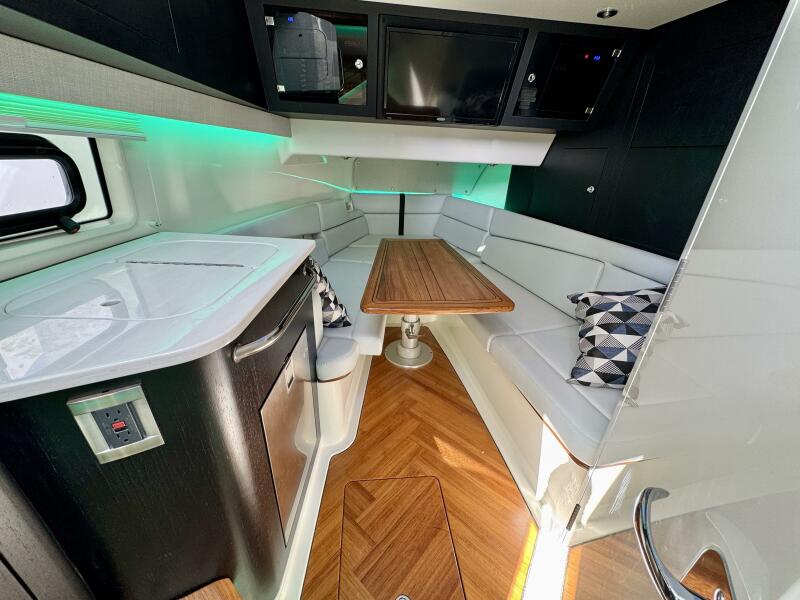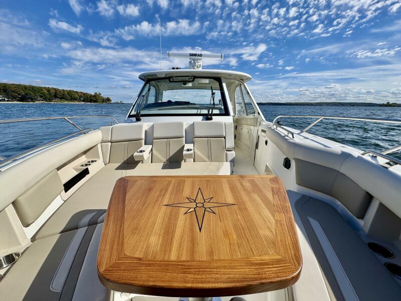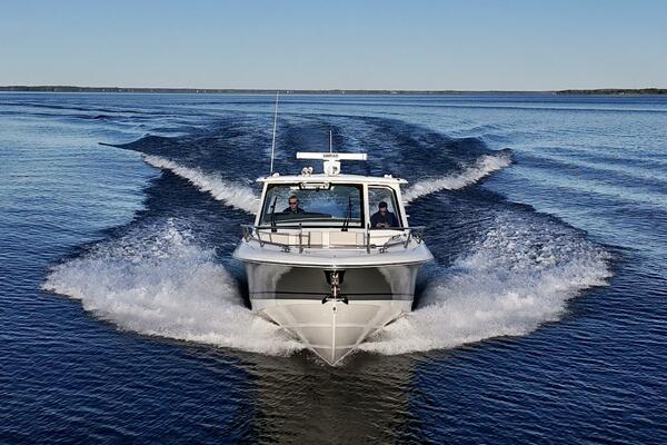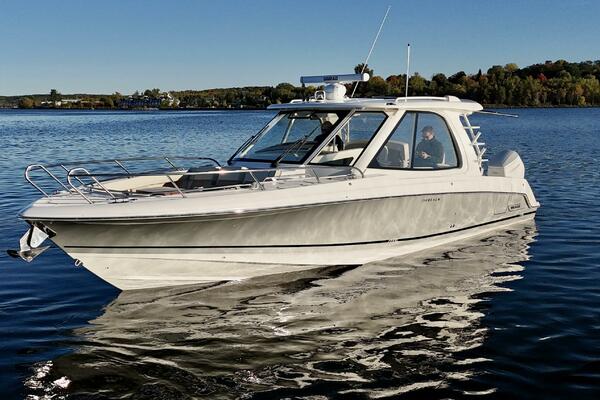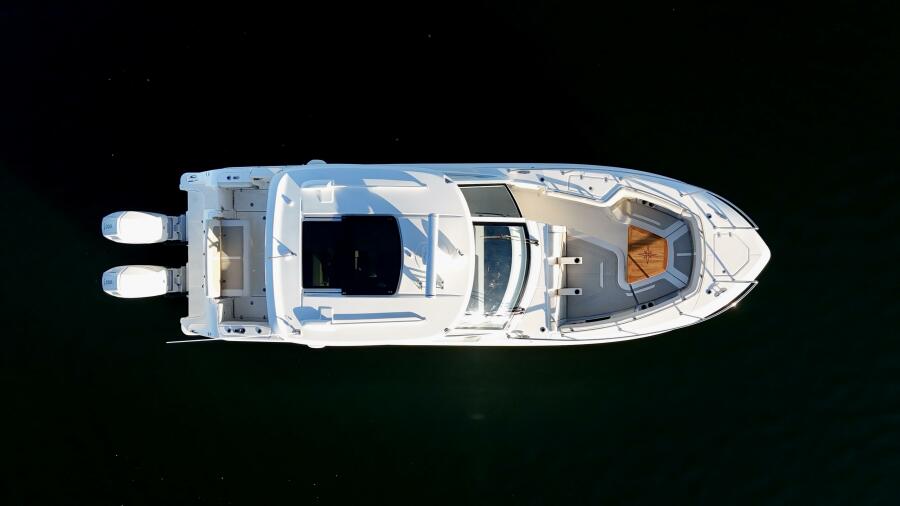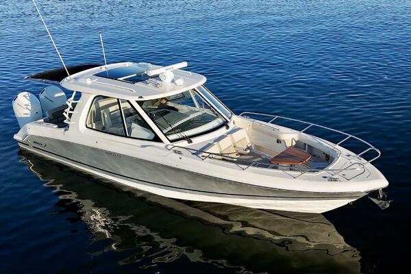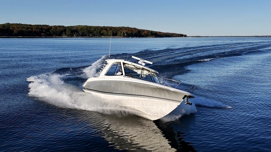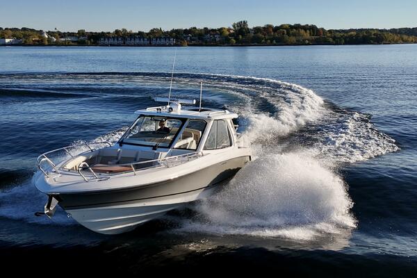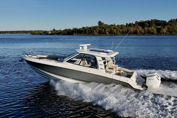 At nearly 40 feet, the 380 Realm express cabin cruiser is a sleek and powerful offshore boat that synthesizes sumptuous comfort amenities, advanced power and performance, and a peerless fishing experience. The commanding center console layout provides seamless Simrad® integration with all navigation and power functions, and the customizable aft deck is ideal for angling or entertaining. Below deck, you’ll find a stunningly appointed cabin with refined and relaxing features that make short or long stays on the water transformative. Explore the many benefits of this 38-ft. express cruiser boat today, and finally make your grandest boating dreams real.