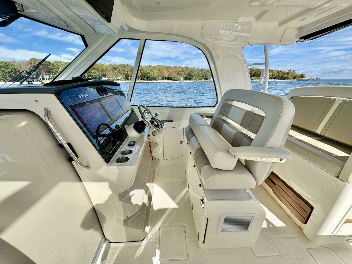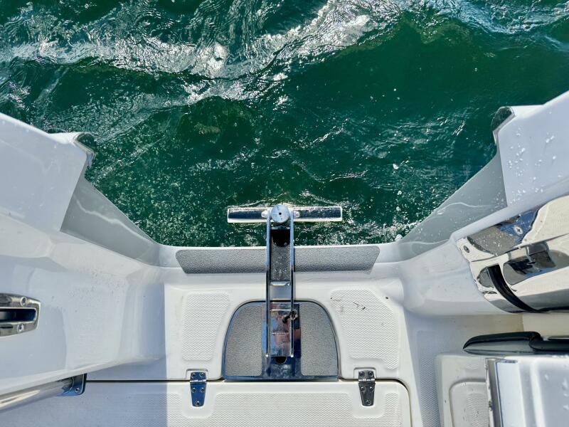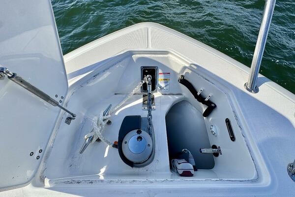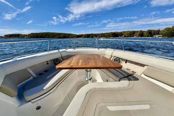 - Nested wind-break door in full windshield provides protection as well as easy bow access.