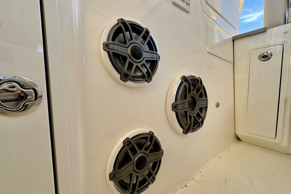- Simrad electronics, including new integrations such as: JL Head Units, Stainless Steel Switches, RGB Courtesy Lighting, Auto Dimming, Red/White/Blue Map Light