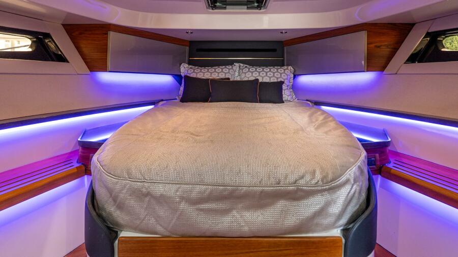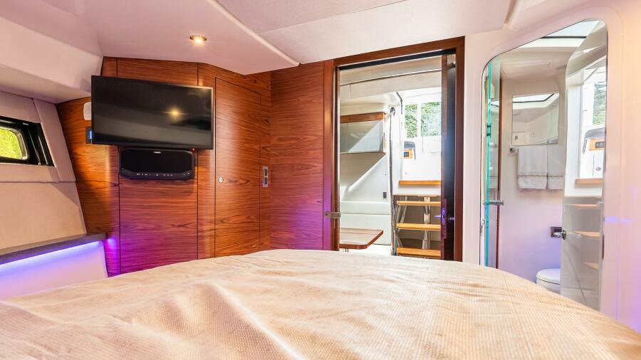 MASTER STATEROOM- JL Audio hidden sub enclosure with JL Audio amplification hidden under v-berth