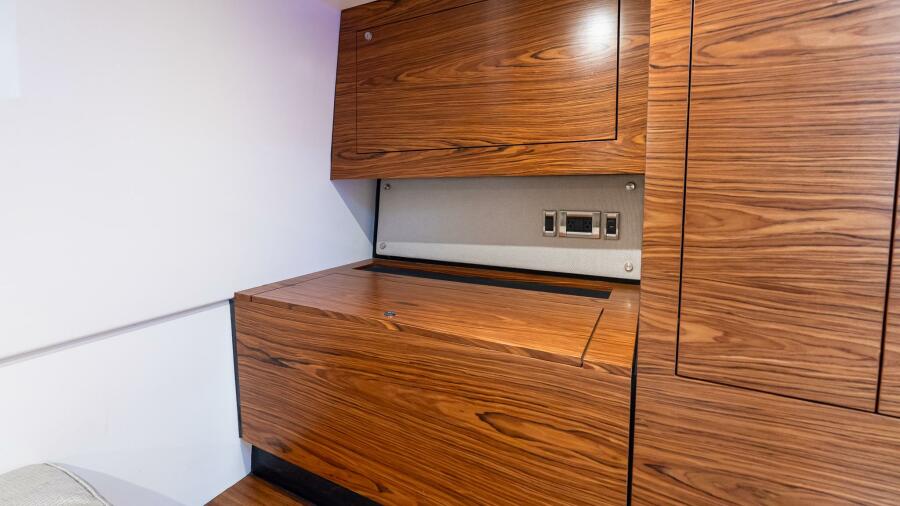 - Storage - hanging locker with cedar lining with door activated light (starboard side)