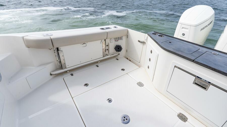 - Dive door (molded fiberglass boarding door on port side with removable stainless-steel dive ladder with dedicated storage in stern seat)