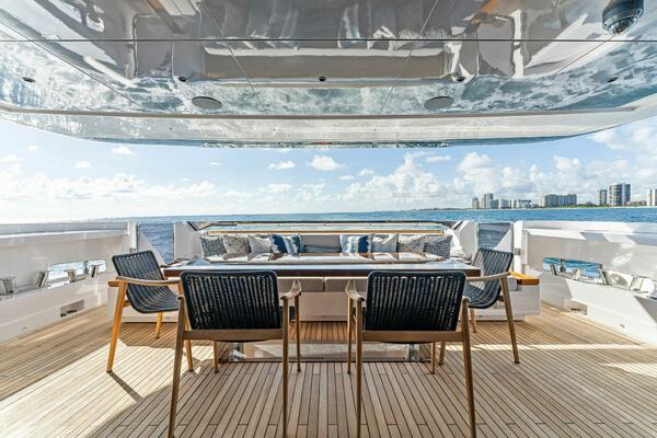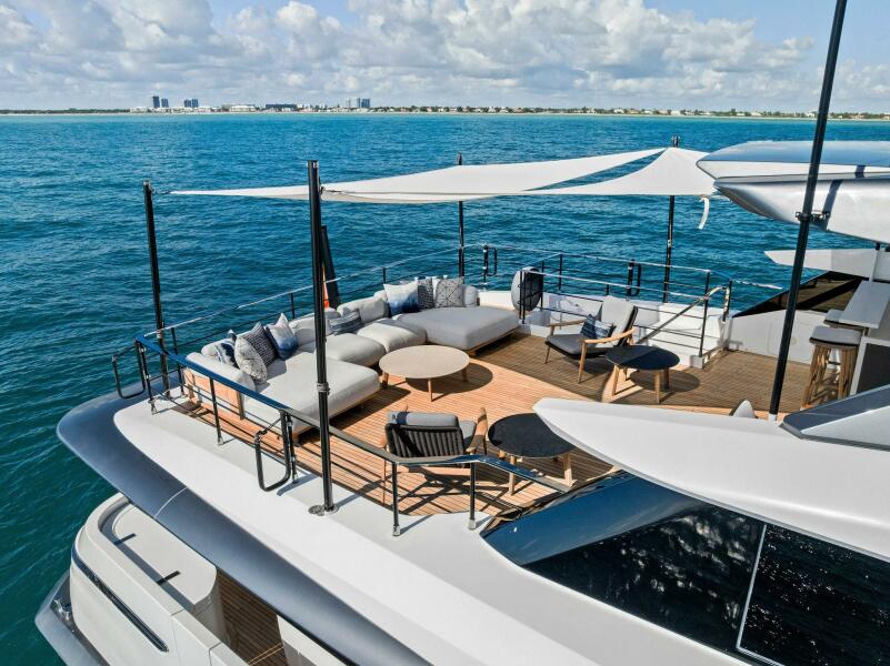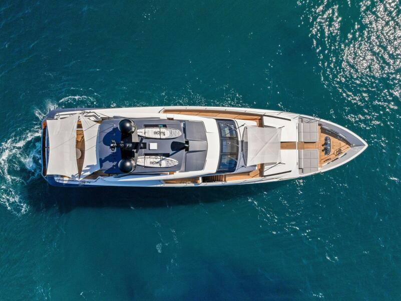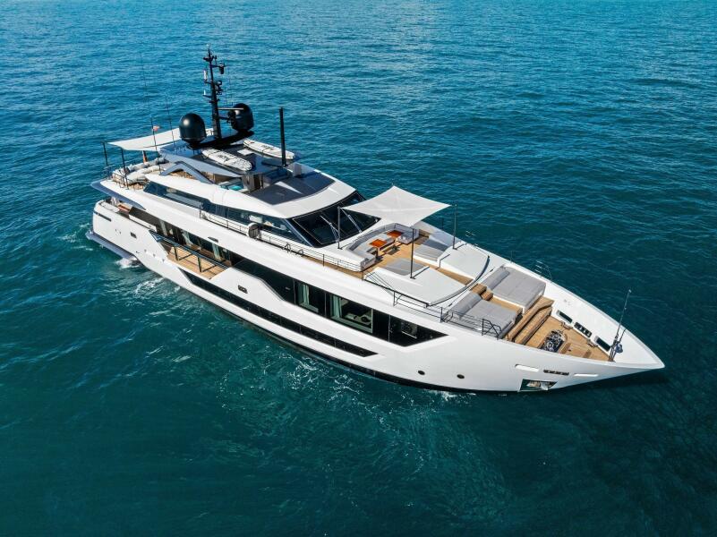 Indulge in the epitome of luxury and sophistication with the Ferretti Custom Line 106, a masterpiece of modern yachting.This sleek, 106-foot beauty is a testament to Italian craftsmanship and design excellence, combining cutting-edgetechnology with timeless elegance. The expansive flybridge offers a panoramic view of the ocean, perfect for sunbathingor dining al fresco under the stars. Inside, the open-plan salon boasts sumptuous leather furnishings and exquisite woodfinishes, creating a serene and stylish retreat. The state-of-the-art galley is designed for gourmet meals at sea, while thefive opulent staterooms, including a lavish full-beam master suite, ensure ultimate comfort and privacy. With its powerfultwin engines and advanced navigation systems, the Ferretti Custom Line 106 delivers a smooth and exhilarating ride,making every journey a luxurious escape.