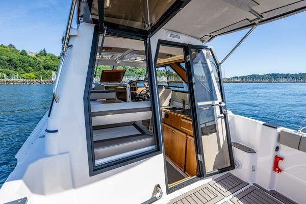 The salon dinette comfortably seats four and can be converted into an additional berth.