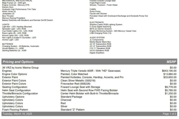 For Sale 2024 Donzi 39 VRZ powered by triple Mercury Racing V10 400R's w only 62 hours and under warranty under 4/2027. Financing and delivery available !
