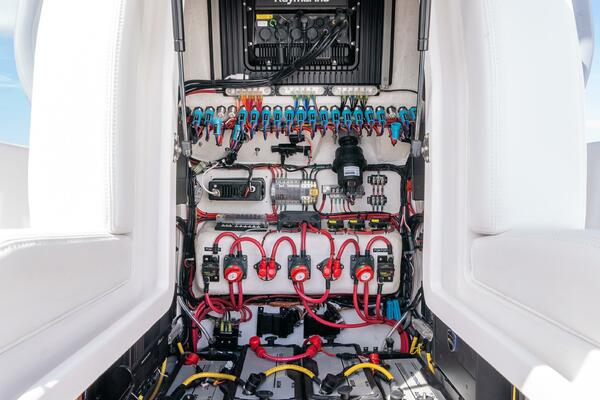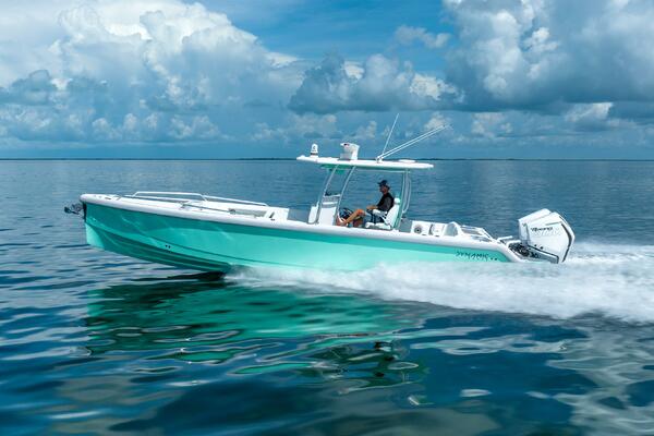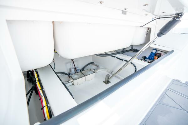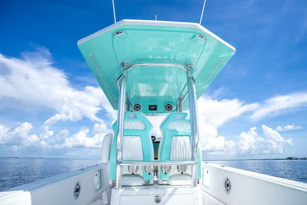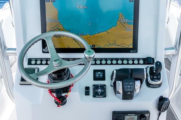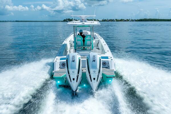 This boat is powered by Twin Suzuki 350 motors mounted on Jack plates, the boat is propelled to speeds approaching 60+MPH with fuel efficiency of over 1.6 miles per gallon at 30MPH. Maneuvering this boat is a breeze with the Optimus Joystick system and the ride is second to non thanks to our design. Installed with the SEAKEEPER RIDE automated trim system to amplify the ride quality and comfort.