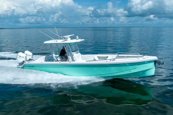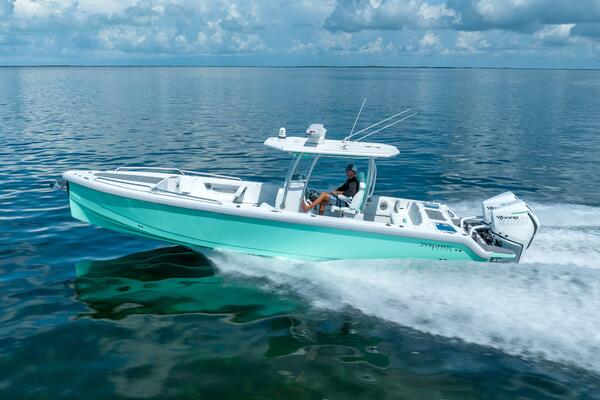 The Dynamic 305V has quickly become a legend of its own. Knife like 9' beam combined with our semi-step hull with a vented Delta plane, weight saving construction technologies and high-tech materials, the 30' 305V is a game changer. This boat is exceptionally dry due to her sharp entry and reverse angle chines, and easy enough to operate for 1 person or bring along 12 of your closest friends. The world's Oceans, Bays, Lakes and Rivers become your playground to explore on this purpose built Dynamic. We have the ability to fully customize your 305V with performance and luxury options, both on new construction hulls or making that personalized adjustment on this specific 305V.