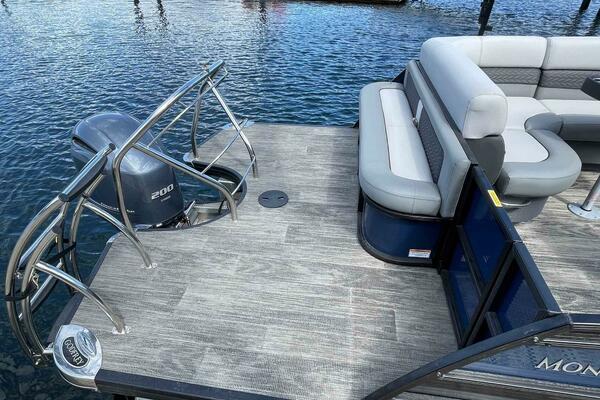 The Godfrey Monaco 235 C GTP 27″ Center Tube is a stylish and stable tritoon pontoon (~23′ 11″ LOA × 8′ 6″ beam) equipped with a 27″ center tube package, fuel-efficient single outboard, and a spacious cruise‐oriented layout for up to 15 people.