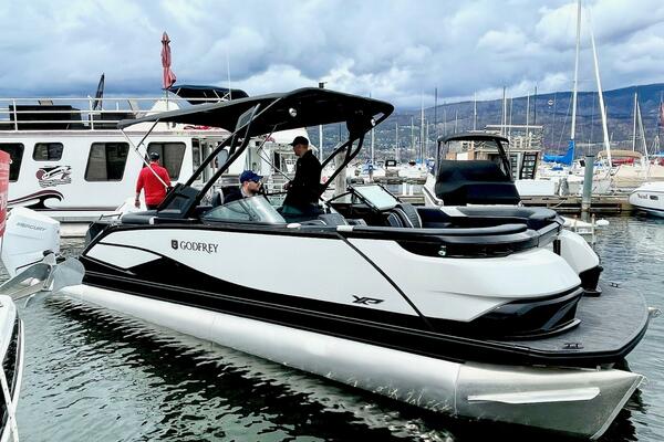 The Godfrey XP 2700 W Twin is a high-performance luxury pontoon boat built for speed and style. Featuring a sleek, modern design and twin outboards (up to Mercury 400s), it combines premium comfort with serious power, making it ideal for both cruising and watersports.
