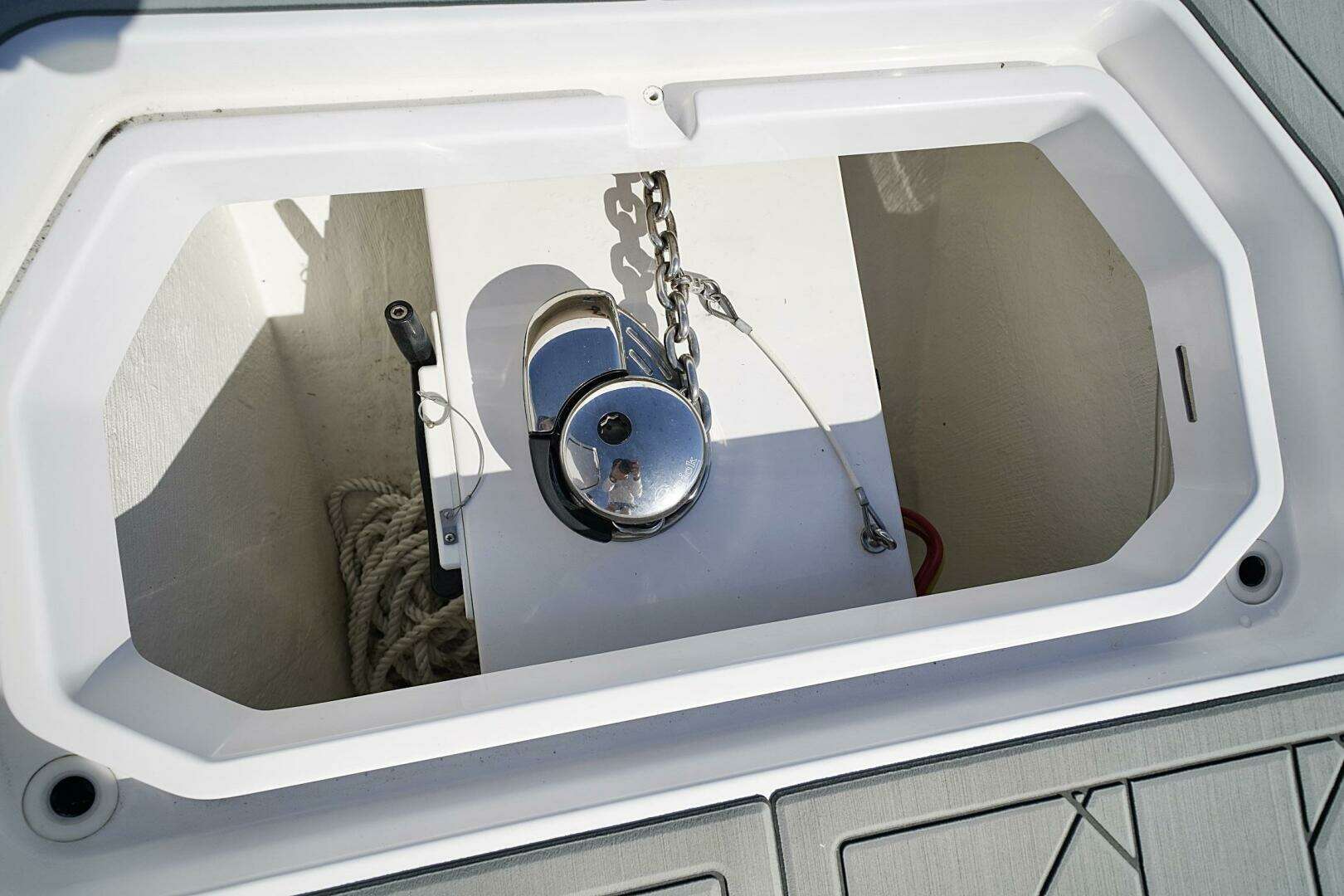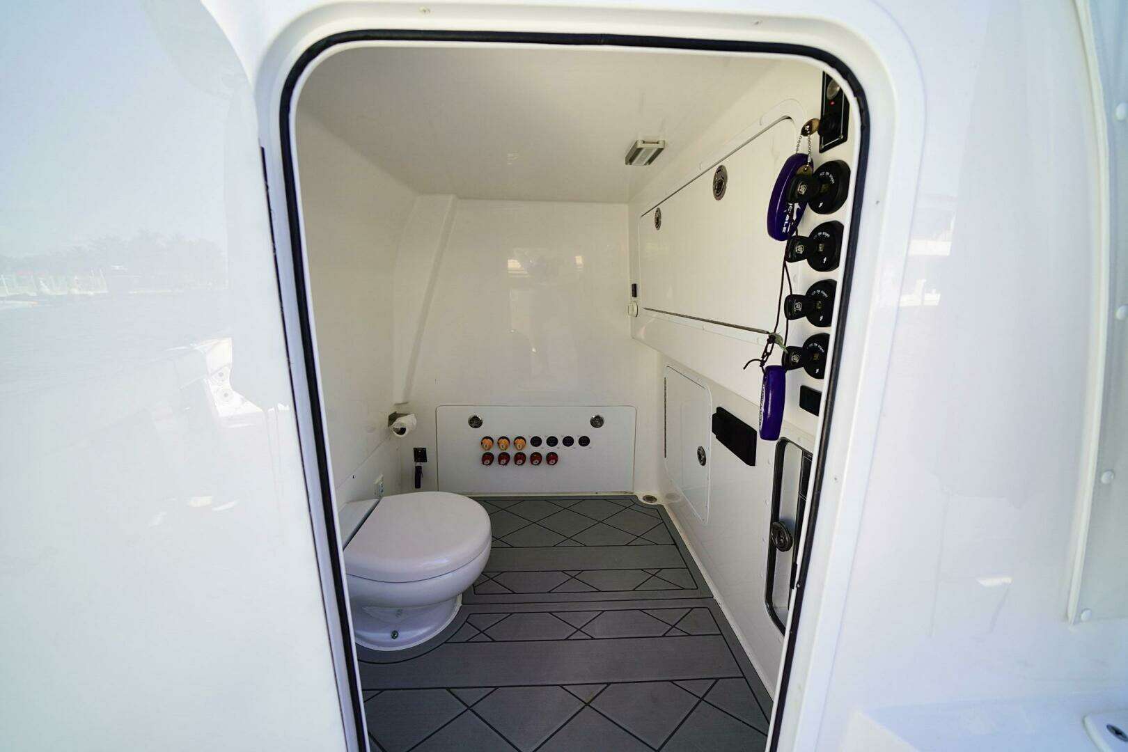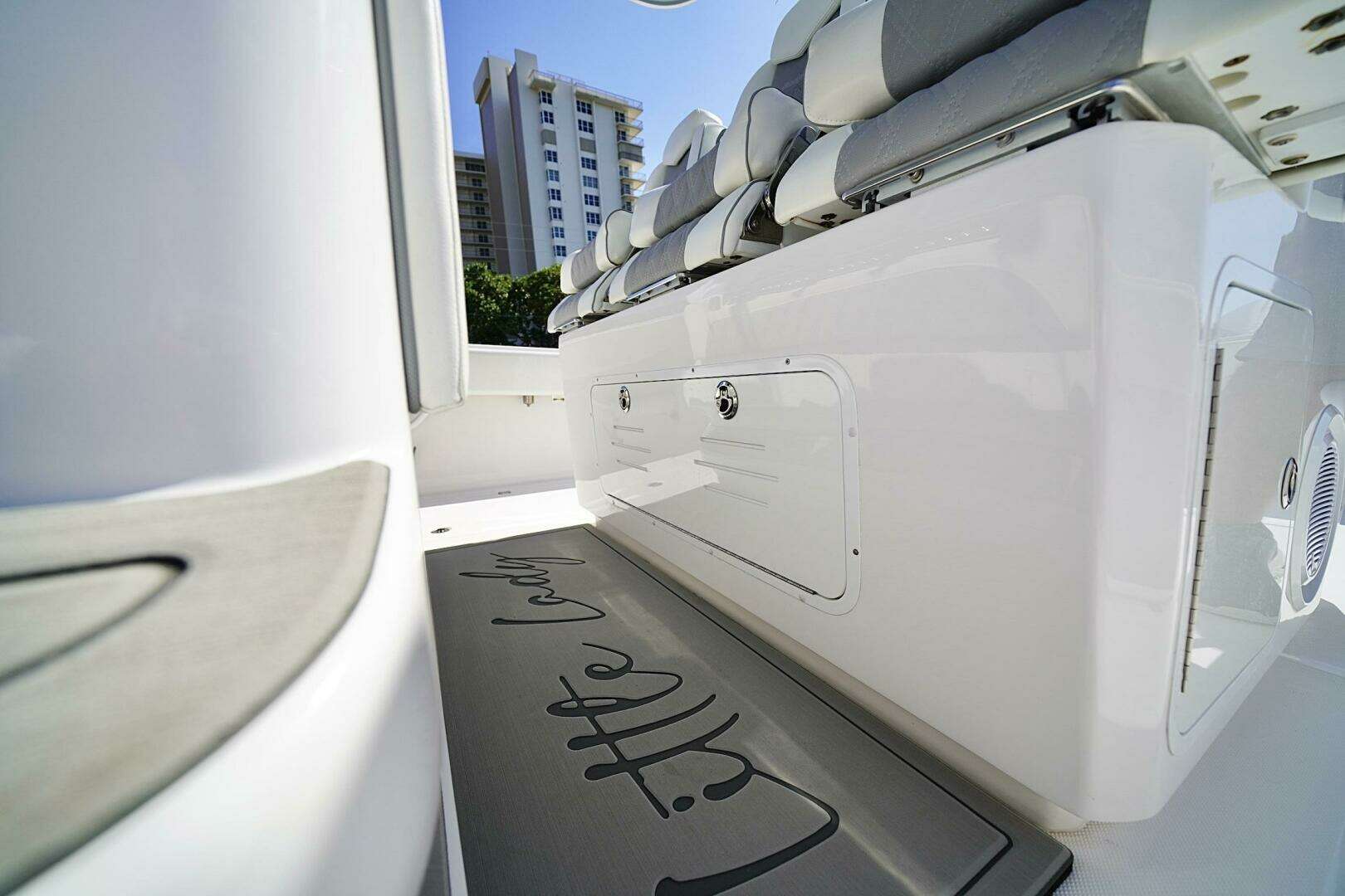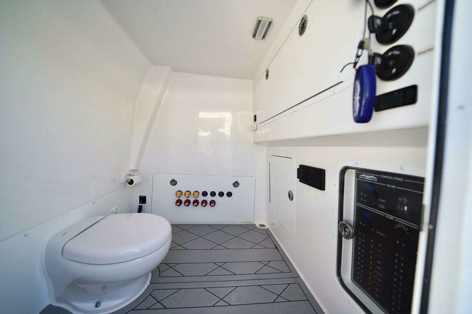 Comfort and style shine throughout with a deluxe console layout, extended coffin lounge, diamond-stitched upholstery, enclosure wings, a hull-side dive door, and premium lighting that enhances her presence day or night. Turnkey and exceptionally clean, she’s primed and ready for her next chapter of adventures on the water.