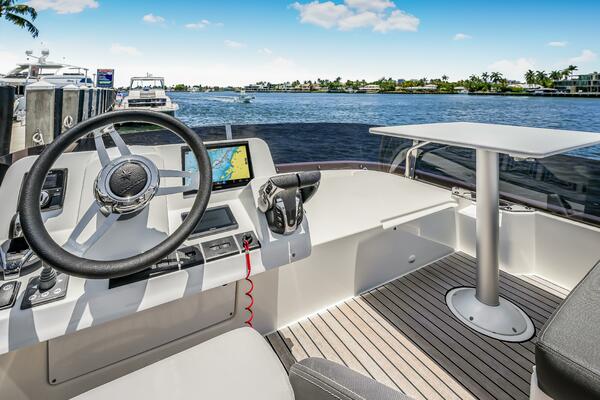 The current owner took delivery of their new boat in June 2024. This boat has very low hours. Their plans have been changed, and the boat is seriously for sale now. The boat is kept in the water in their slip where they have a condominium in Las Olas, Fort Lauderdale. The marina slip and the condominium are also for sale if anyone is interested in a package deal. The boat will be taken out of the water for dry storage at InterMarine end of June. Originally this boat was meant to be used in a colder climate and does not have an air conditioner or the generator. However, these 2 items can be installed by InterMarine. The boat is equipped with all other options including Garmin GPS and Radar, Yamaha Joystick with Auto Pilot, Electric Toilet, Optional Refrigerator in 3rd Stateroom, Bow Thruster, to name a few.
