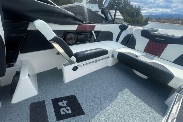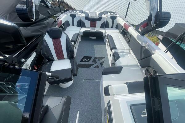 A premium towboat designed for wakesurfing, wakeboarding, and family fun, the MasterCraft XT24 pairs bold styling with unmatched surf performance thanks to its Vector Drive hull and SurfStar ballast system.