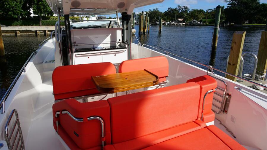 At just over 40 feet, the Tender 11 is Nimbus’ vision of the perfect day boat. She perfects easy living on the water, providing an innovative social environment for friends and family to gather and relax. This means a large lounge area with adjustable seating and dining configurations, multiple sun beds, outdoor galley for entertaining, vast storage for gear and water toys, and an impressive amount of deck space which allows for an overwhelming freedom of movement. With a wide range of engine options and thanks to a stepped hull design, you can cruise comfortably with speeds anywhere between 20 and 40 knots.